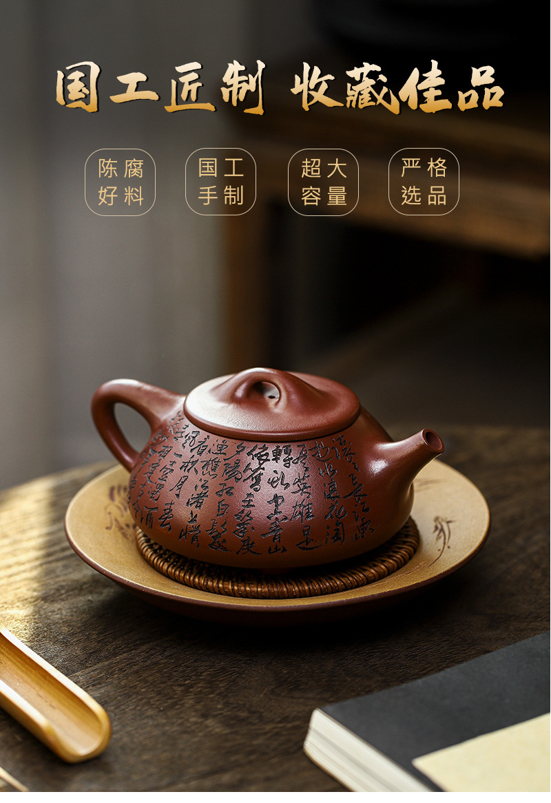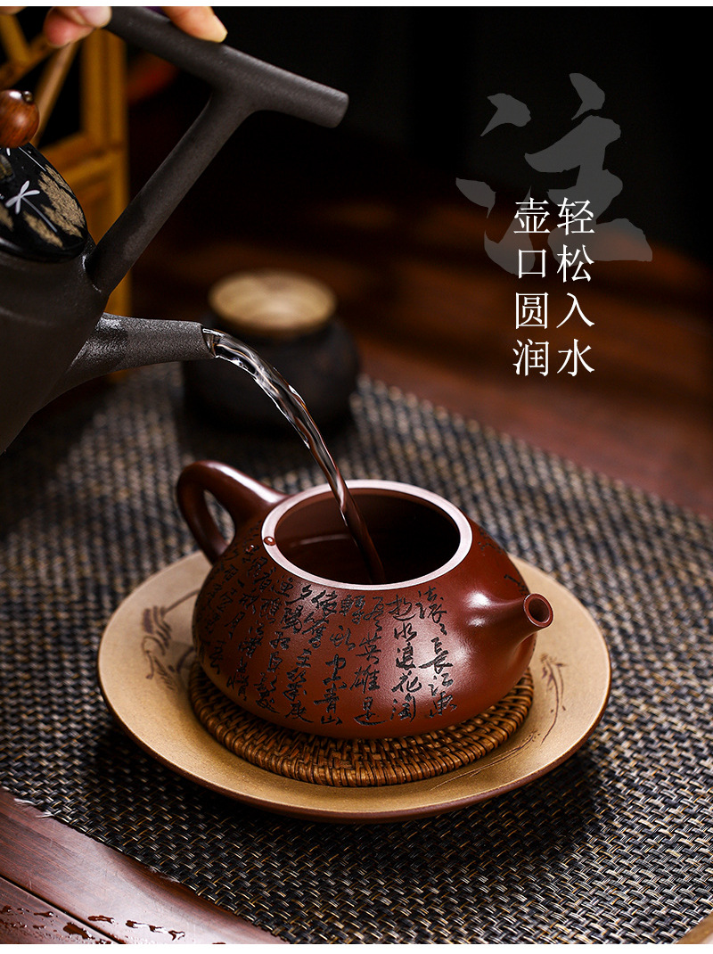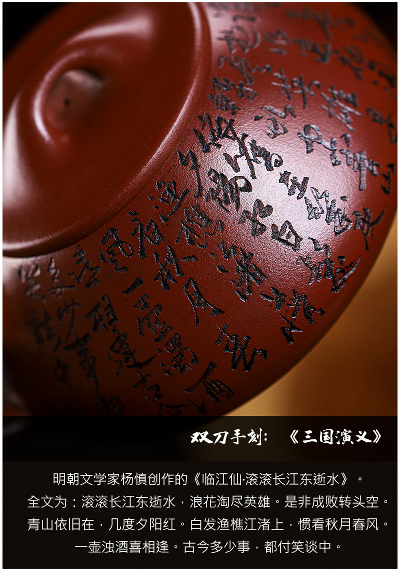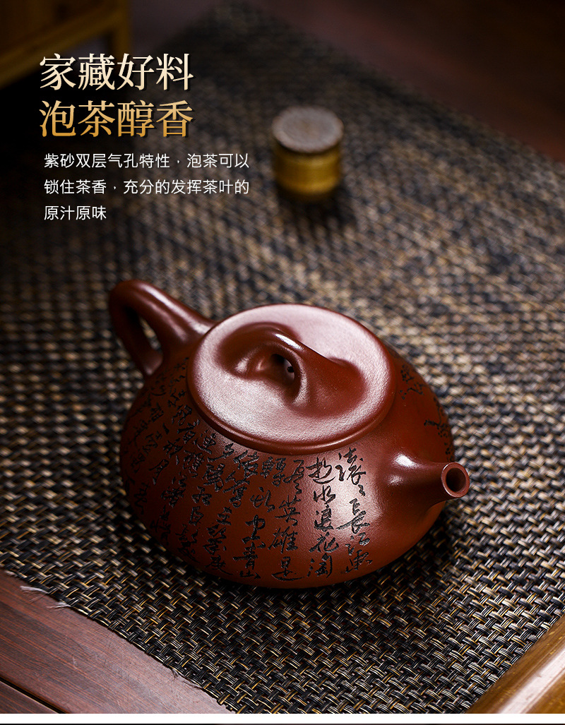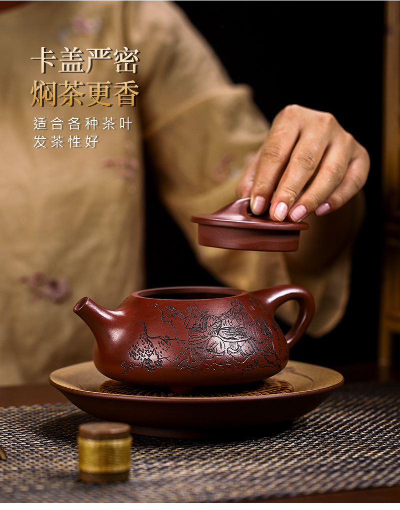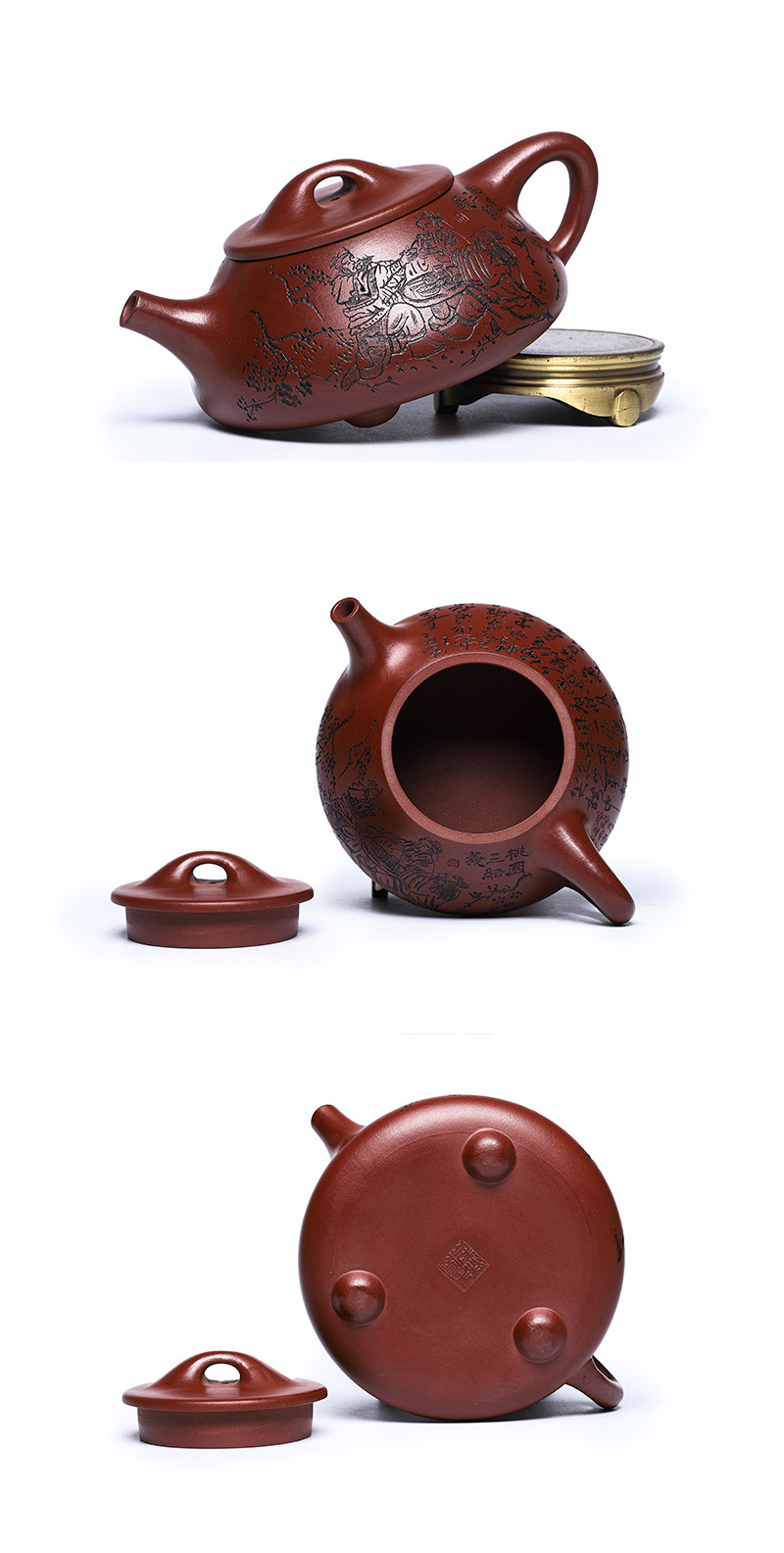 商品名称:宜兴手工紫砂壶家藏革紫泥桃园演义出水爆爽