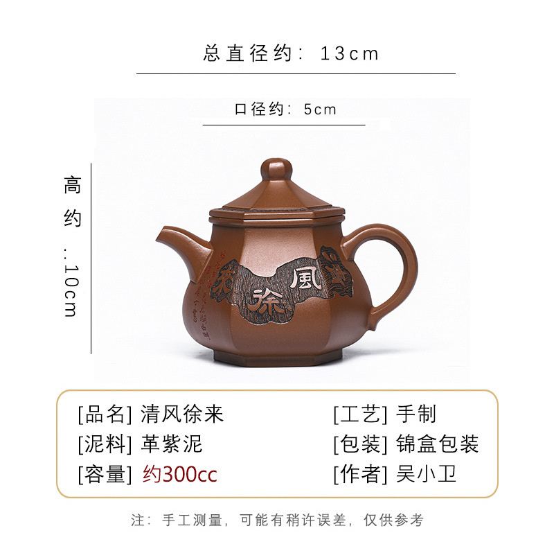 商品名称:宜兴手工紫砂壶革紫泥清风徐来泡茶壶证书全功夫茶具浆出水暴爽
