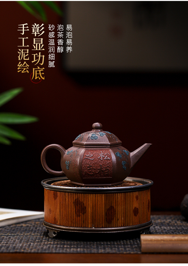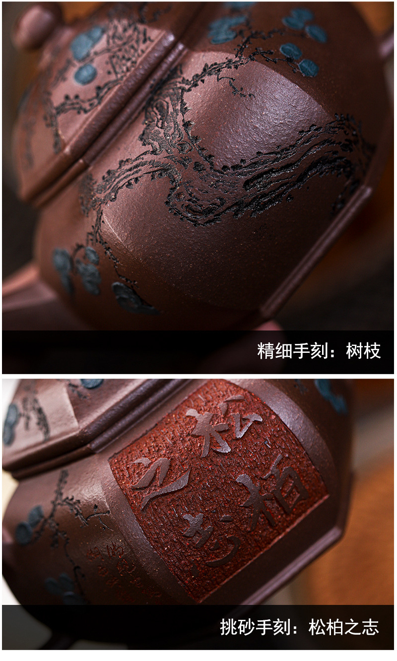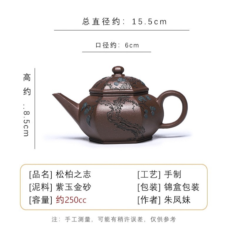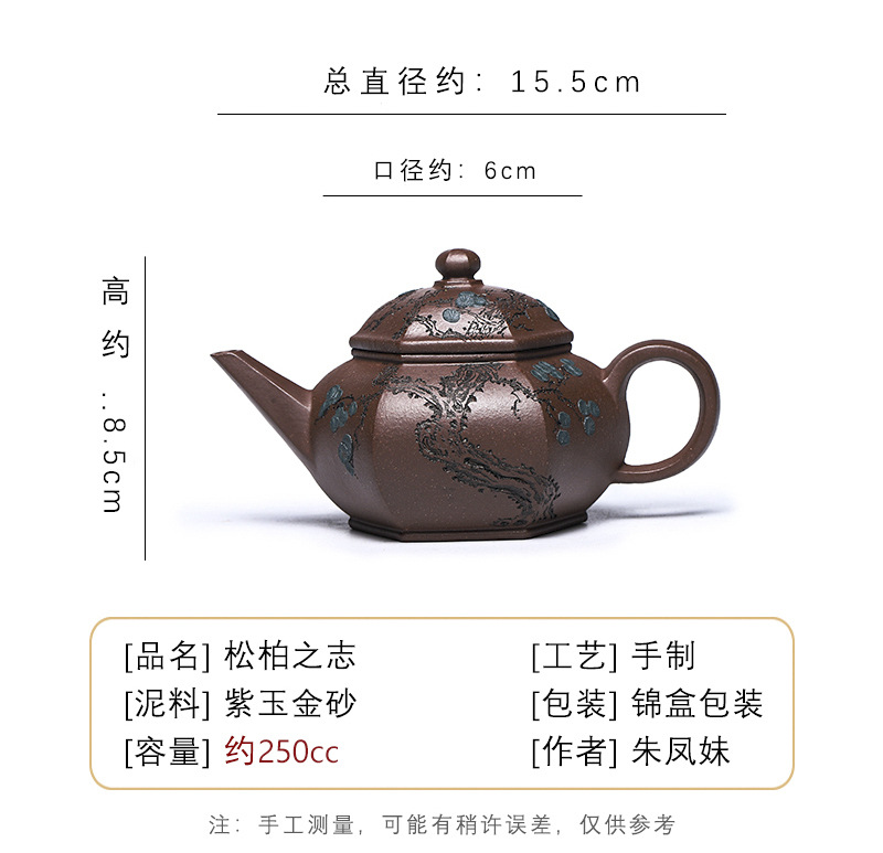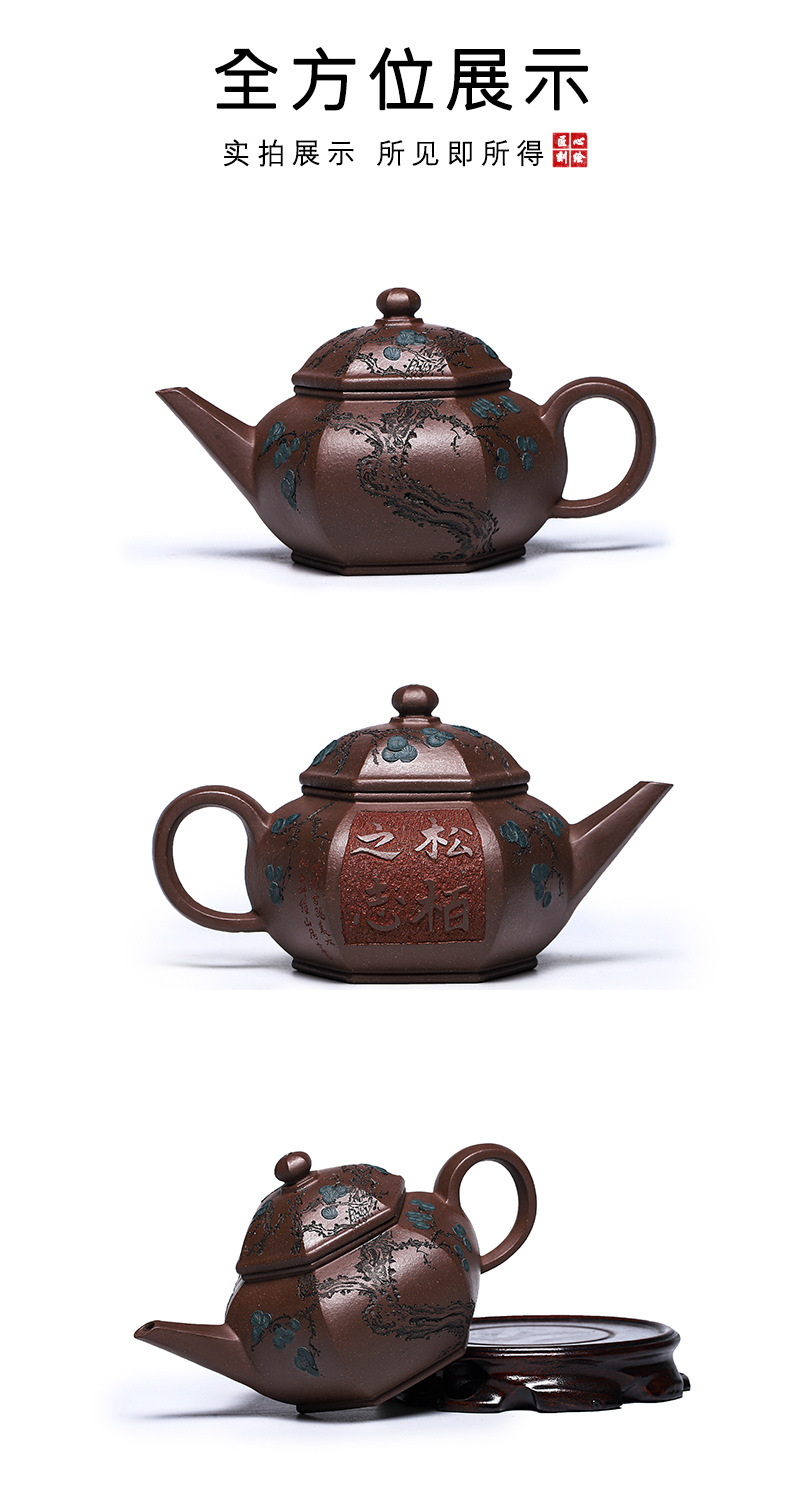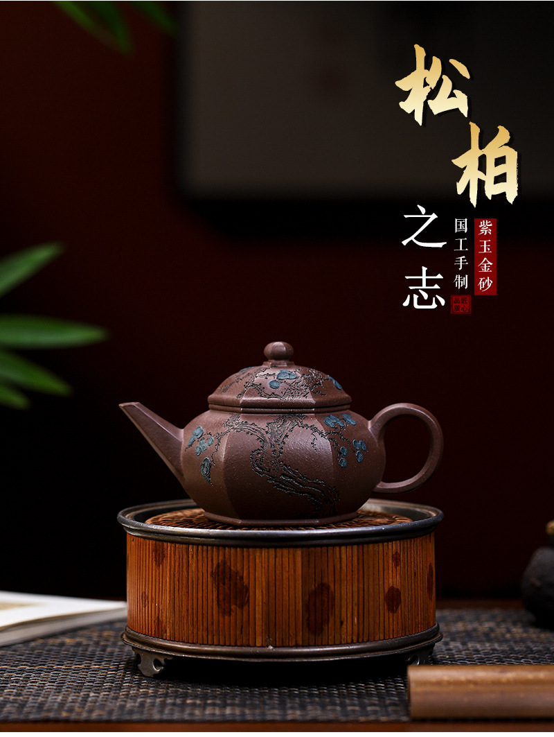 商品名称:宜兴手工紫砂壶家藏紫玉金砂松柏之志出水爆爽滴水不漏国工手制
