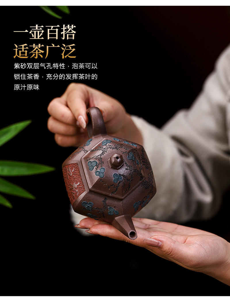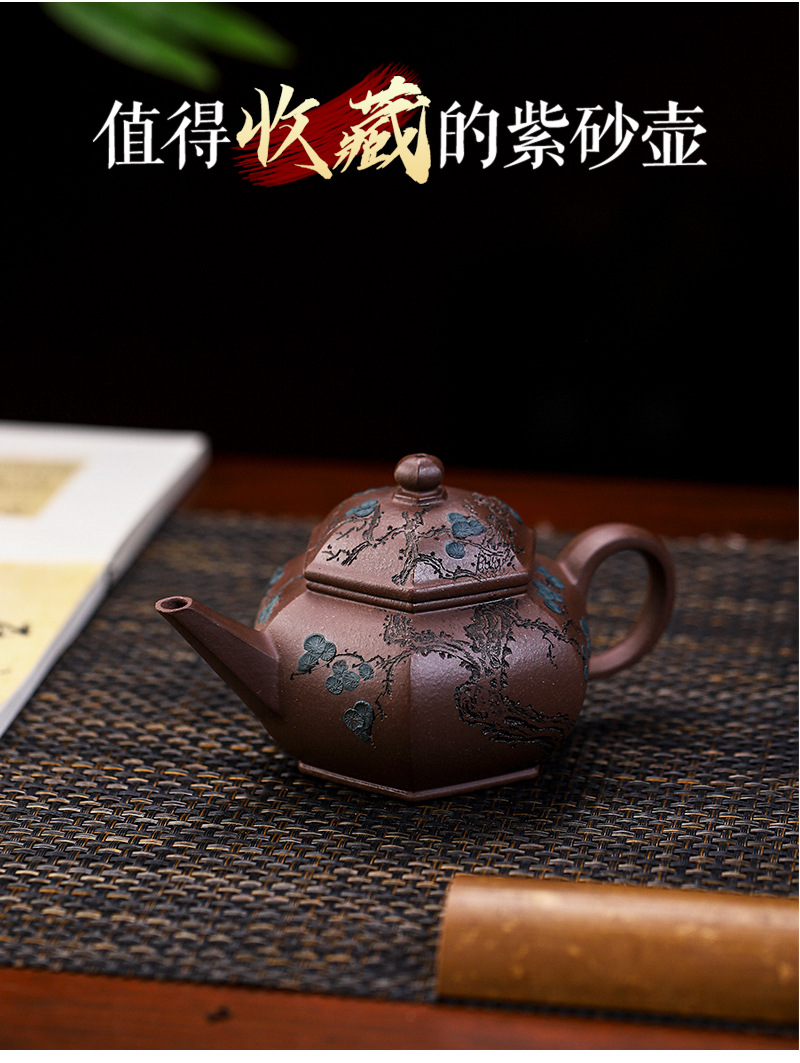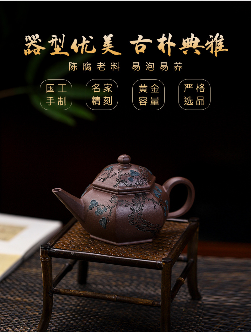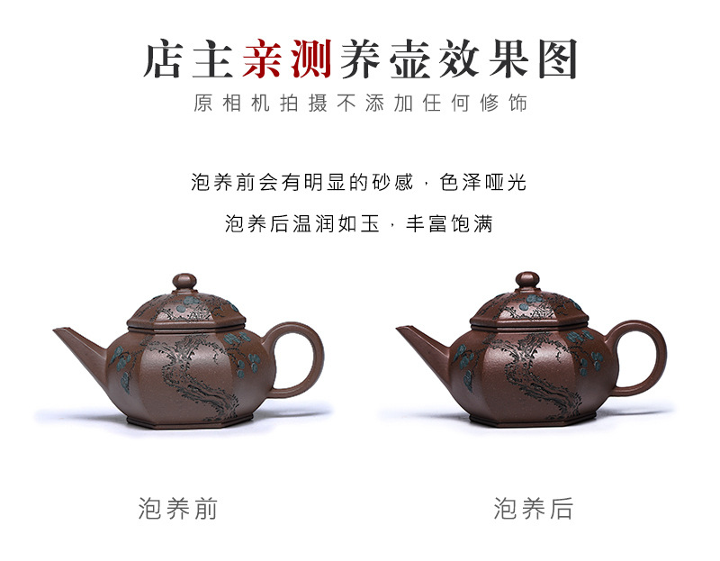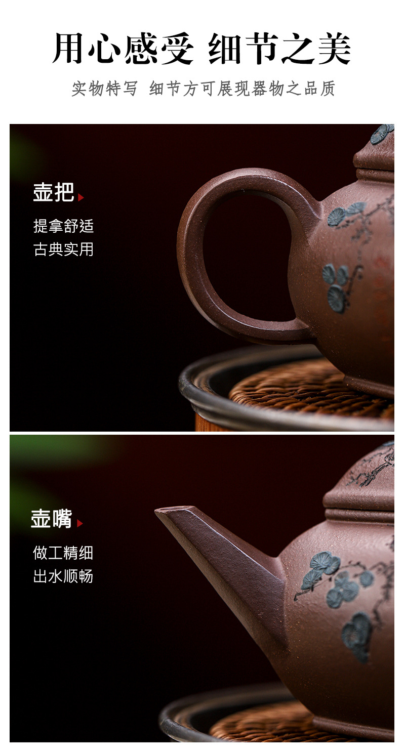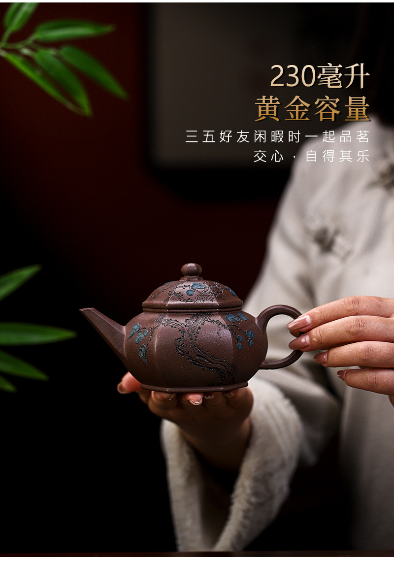 商品名称:宜兴手工紫砂壶家藏紫玉金砂松柏之志出水爆爽滴水不漏国工手制