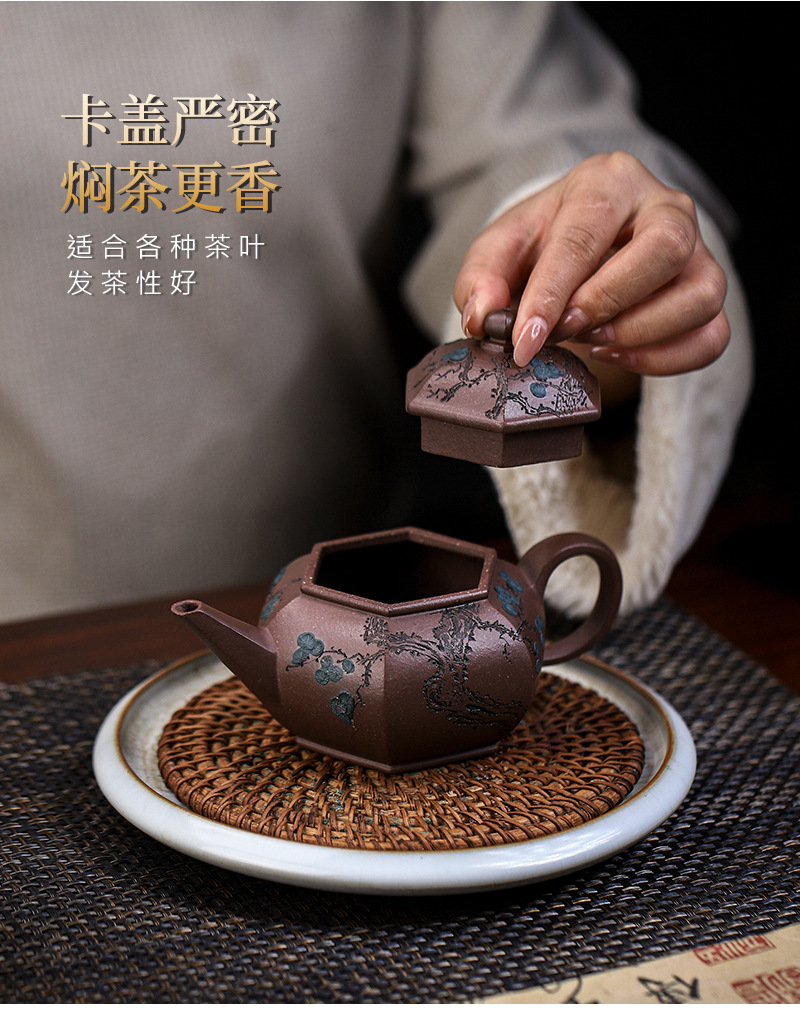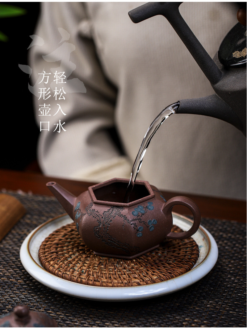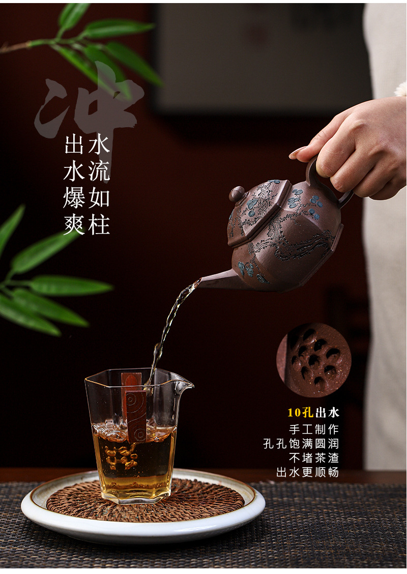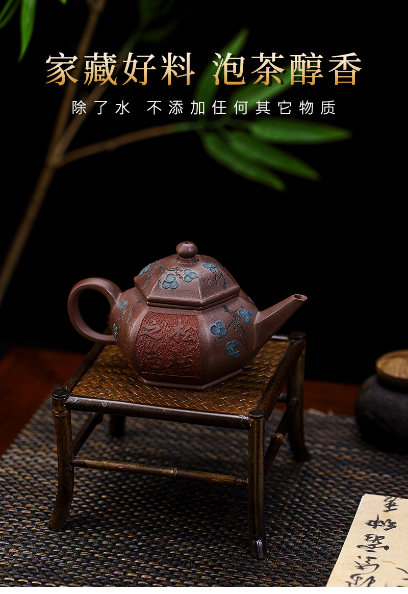 宜兴手工紫砂壶家藏紫玉金砂松柏之志出水爆爽滴水不漏国工手制