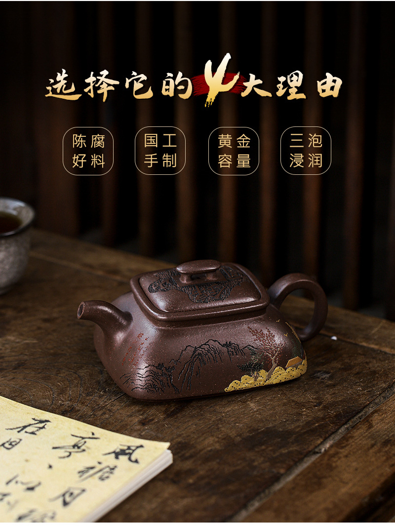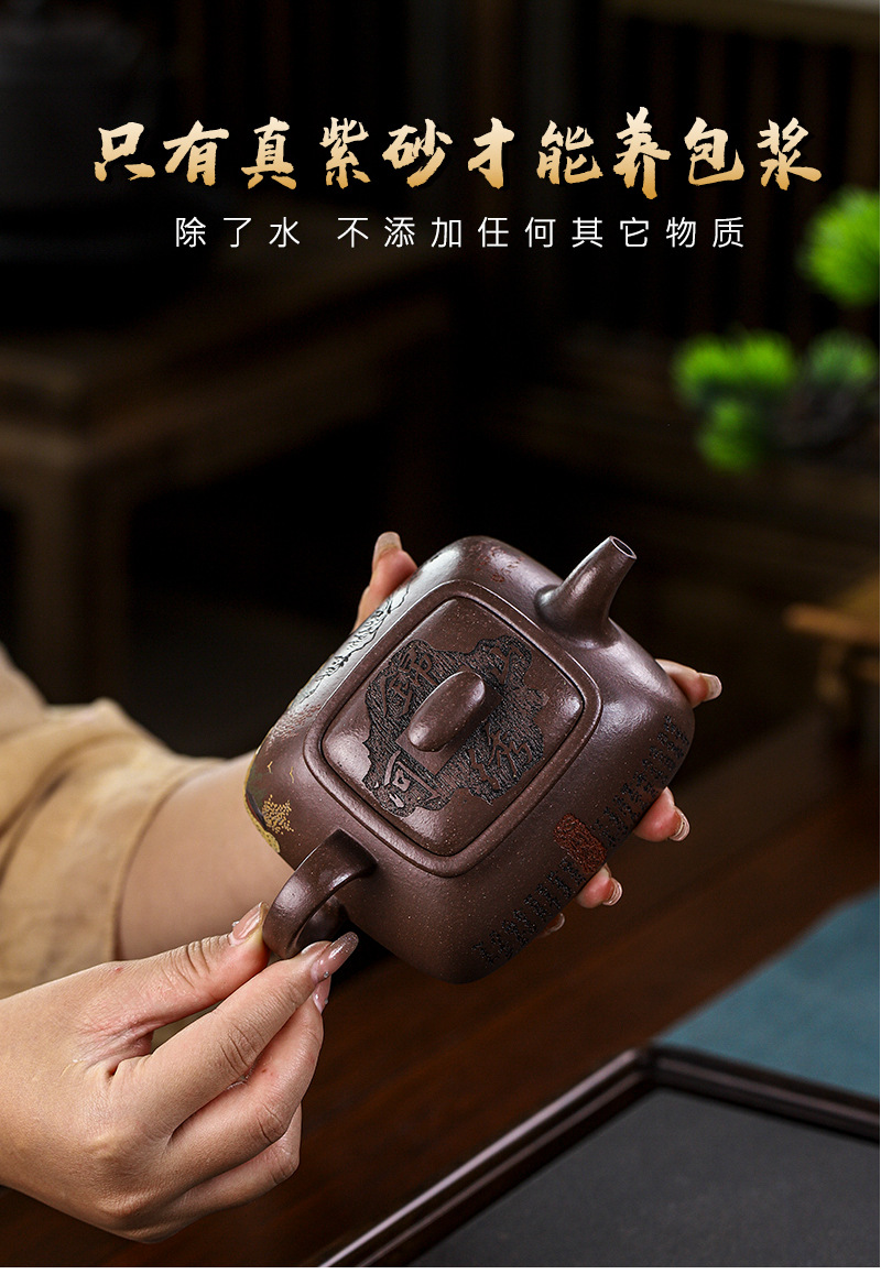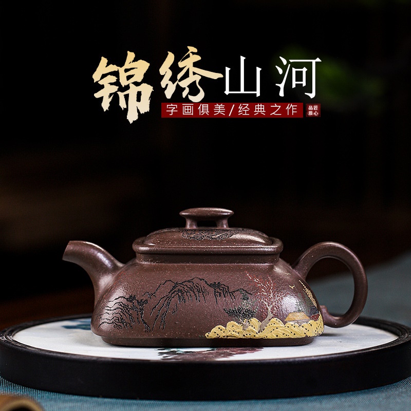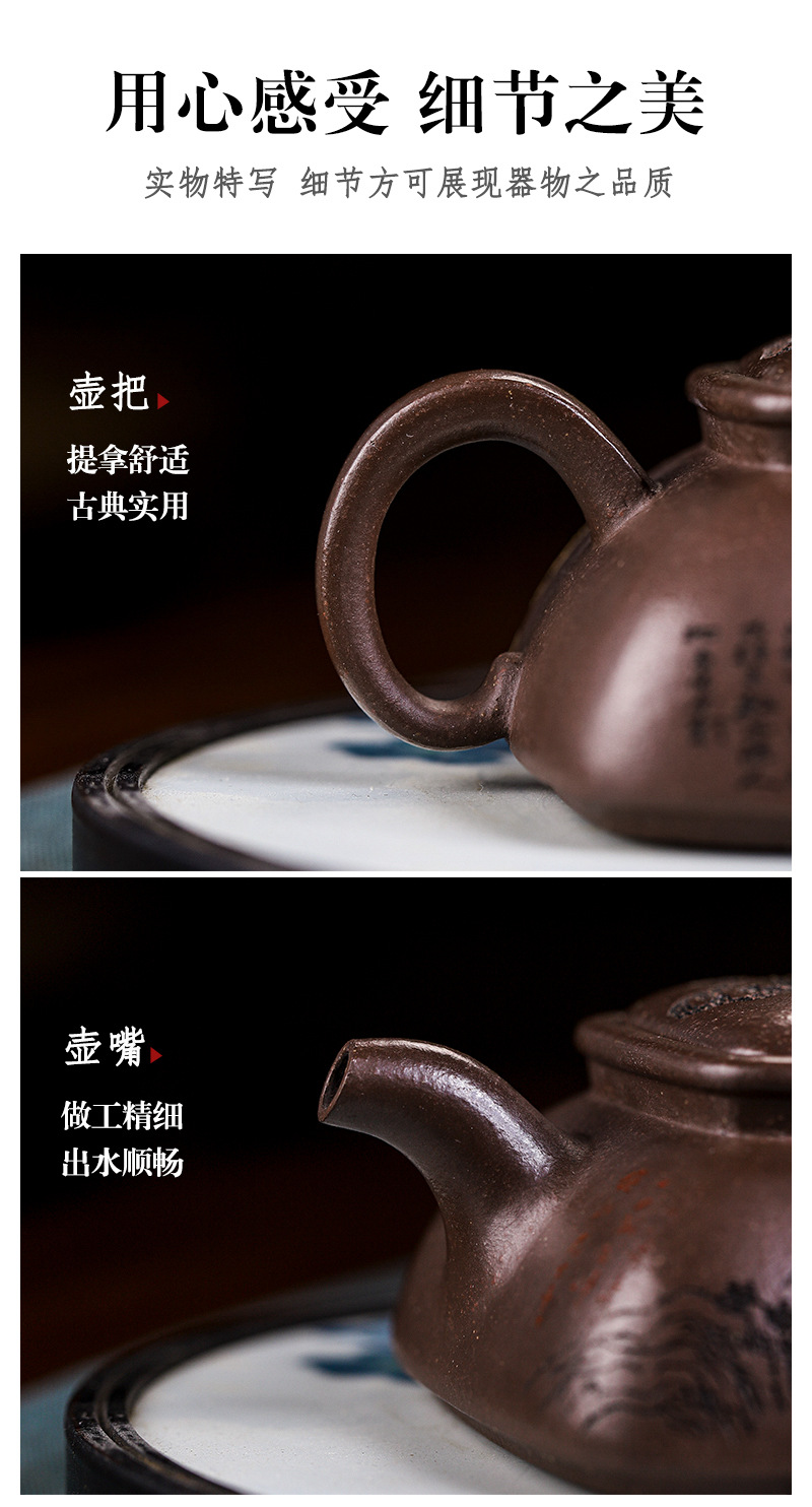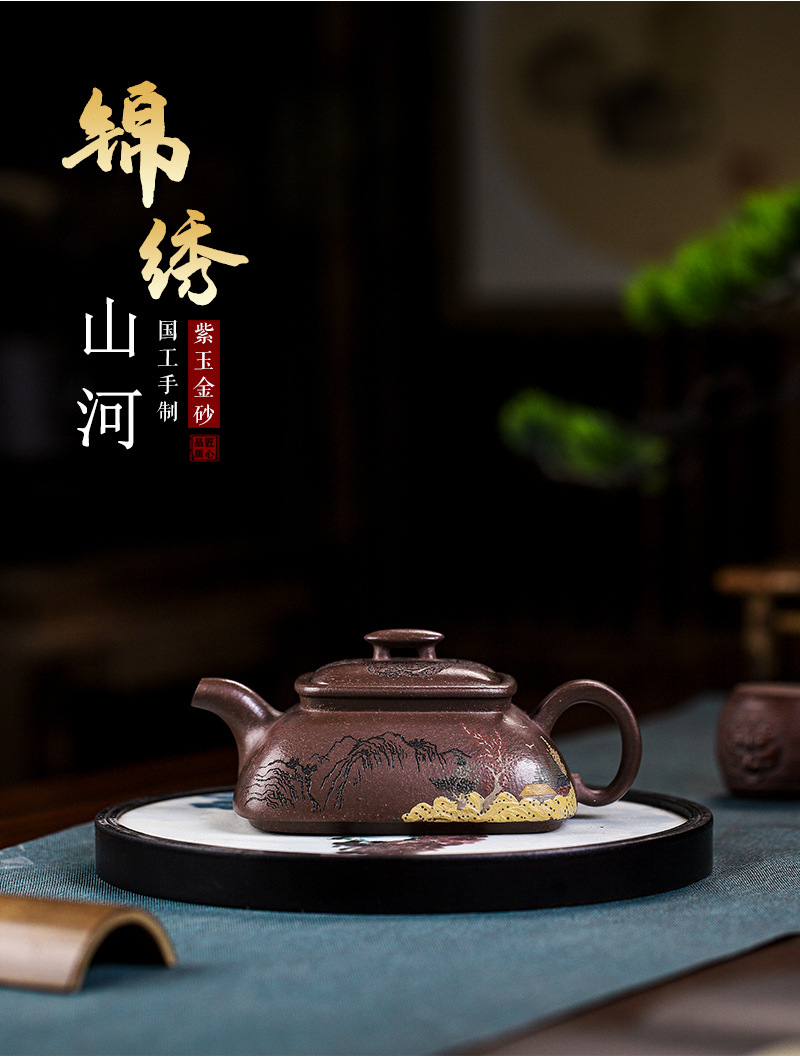 商品名称:宜兴手工紫砂壶家藏紫玉金砂锦绣山河出水爆爽滴水不漏国工手制