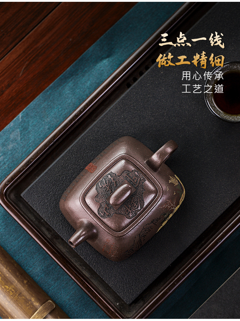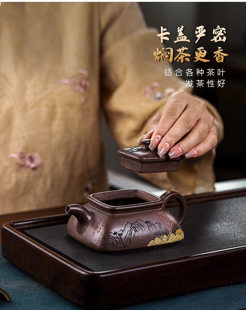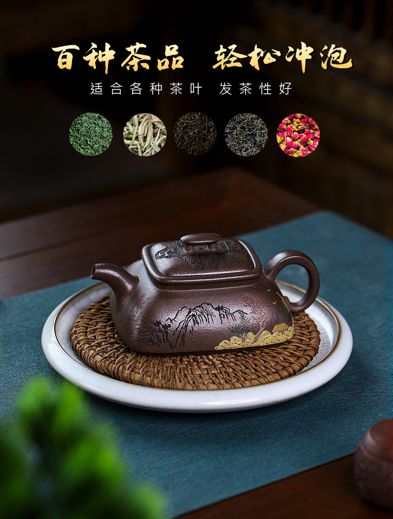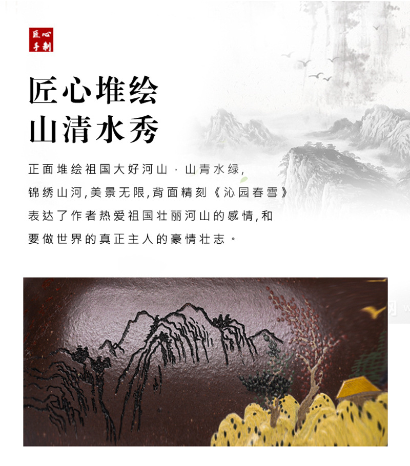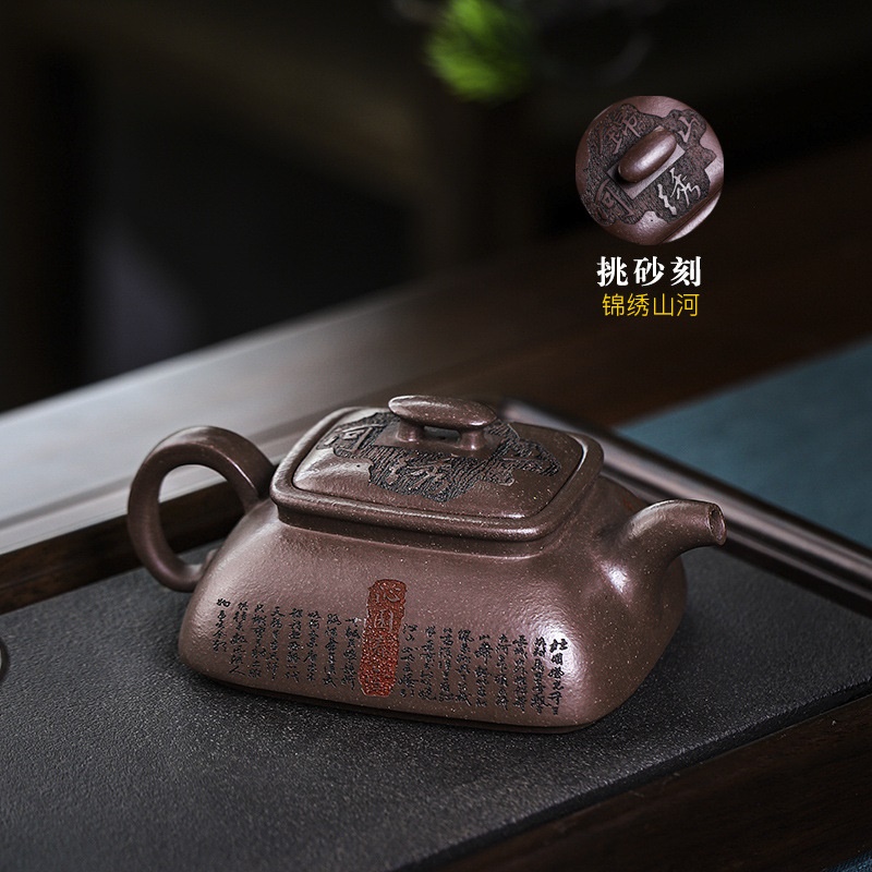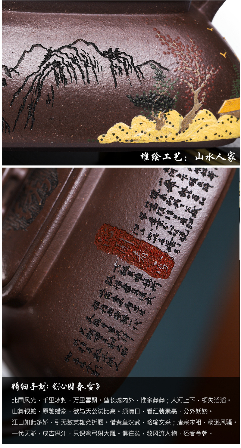商品名称:宜兴手工紫砂壶家藏紫玉金砂锦绣山河出水爆爽滴水不漏国工手制