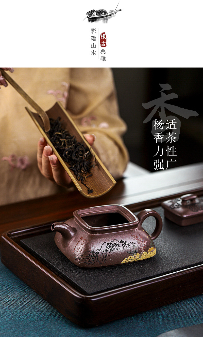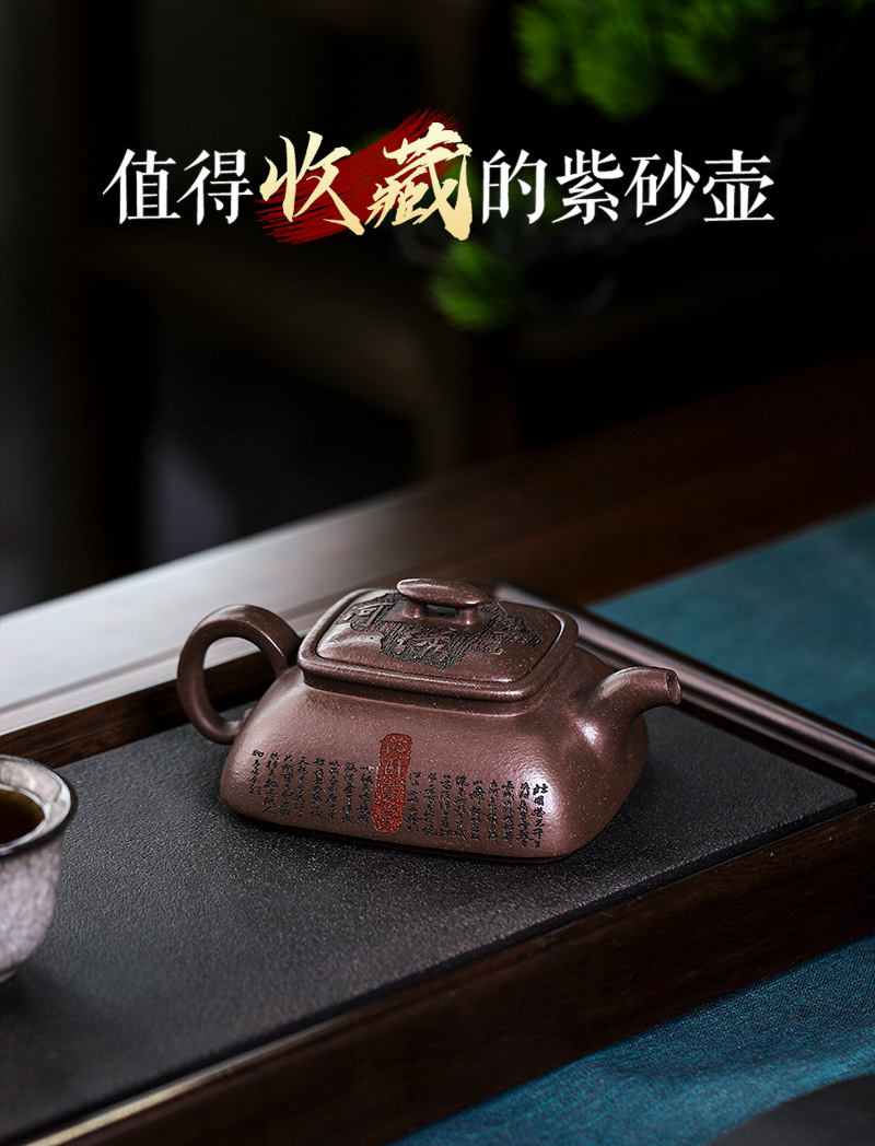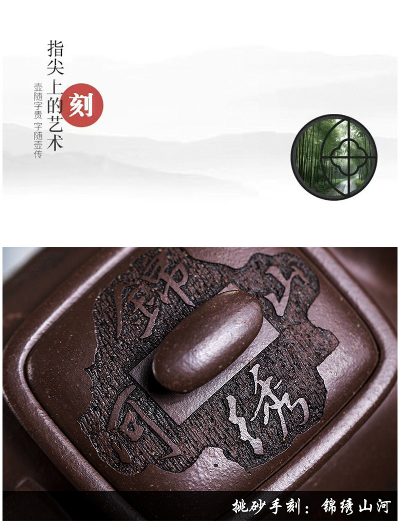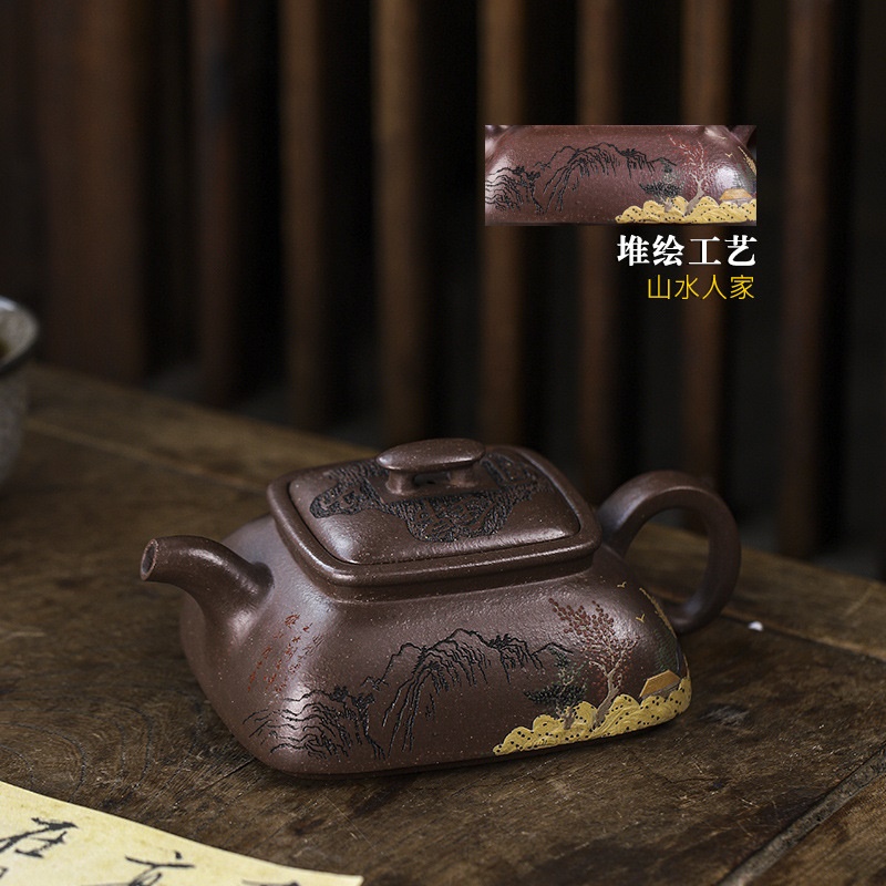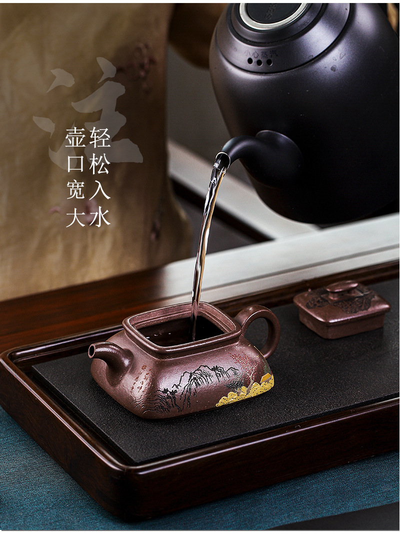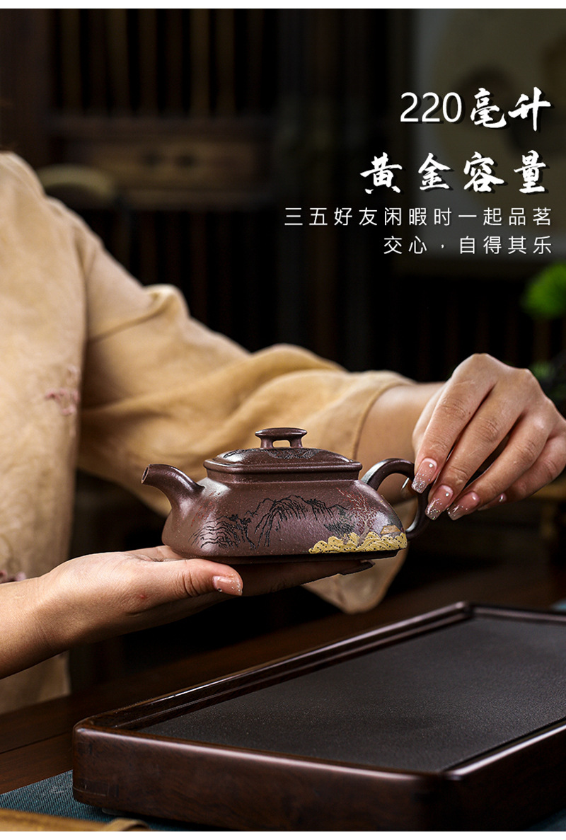 商品名称:宜兴手工紫砂壶家藏紫玉金砂锦绣山河出水爆爽滴水不漏国工手制