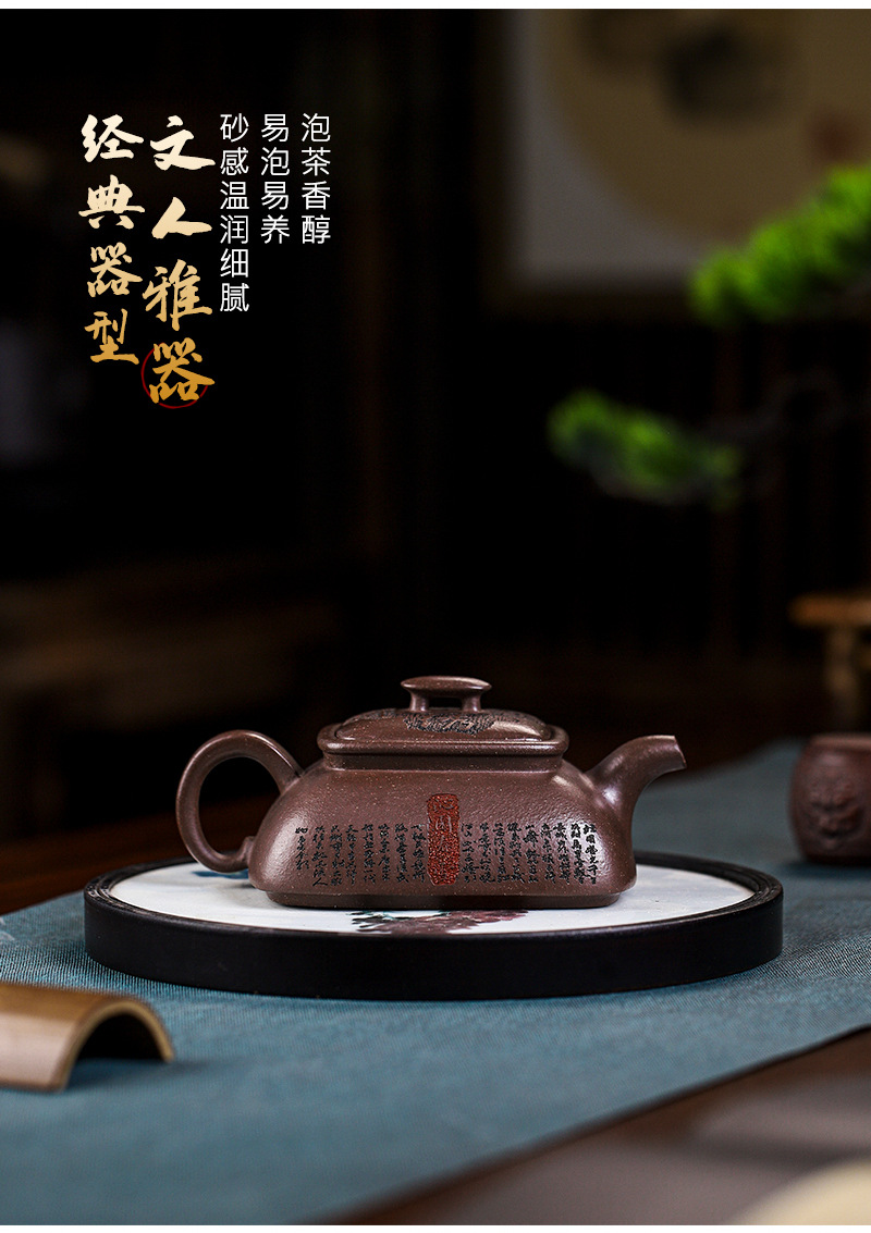 宜兴手工紫砂壶家藏老紫泥琴樽四方壶养生泡茶壶茶具450毫升