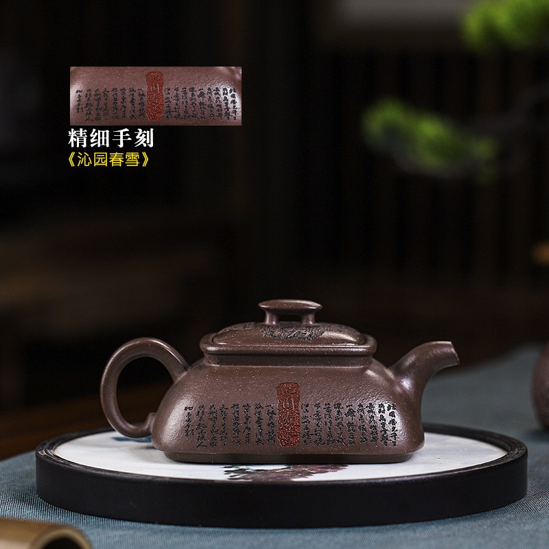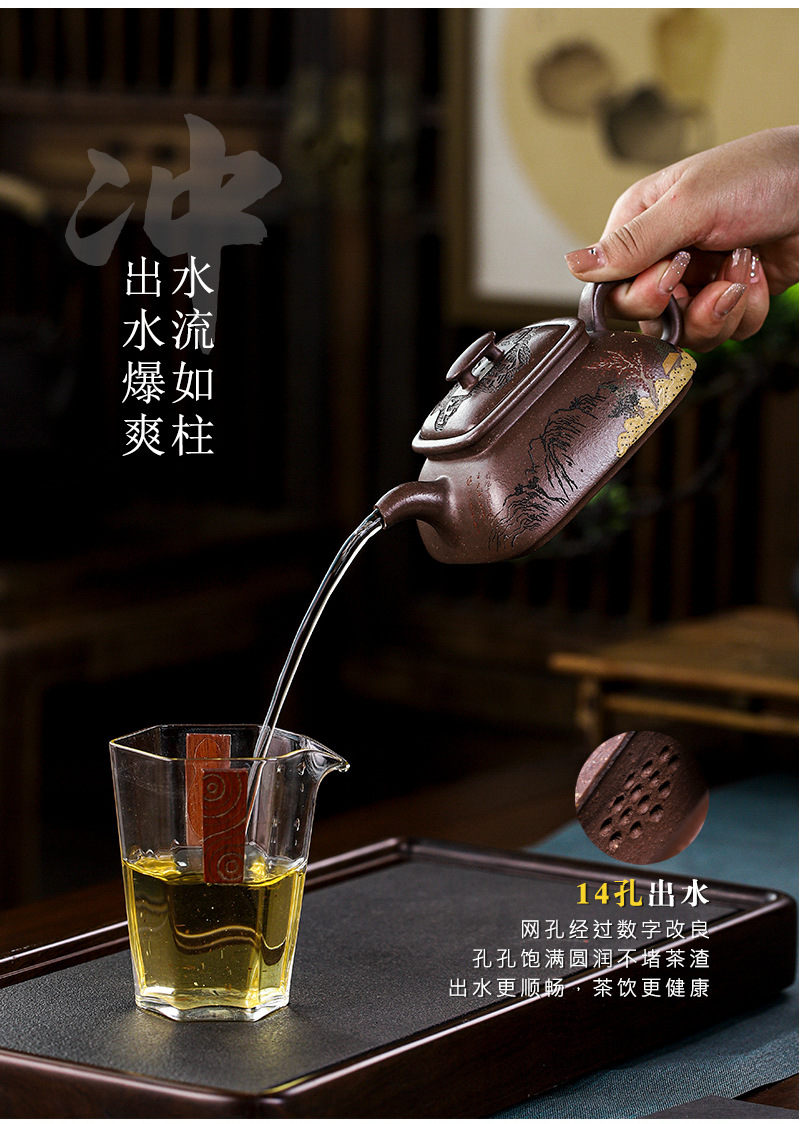宜兴手工紫砂壶家藏紫玉金砂锦绣山河出水爆爽滴水不漏国工手制