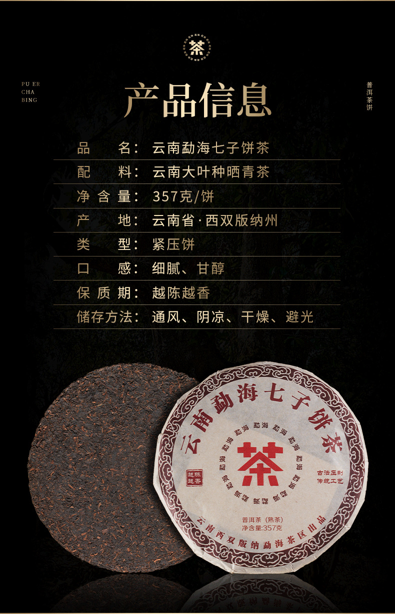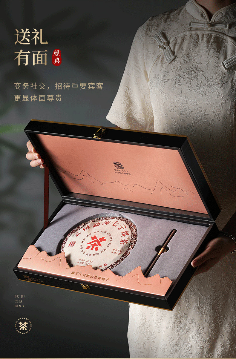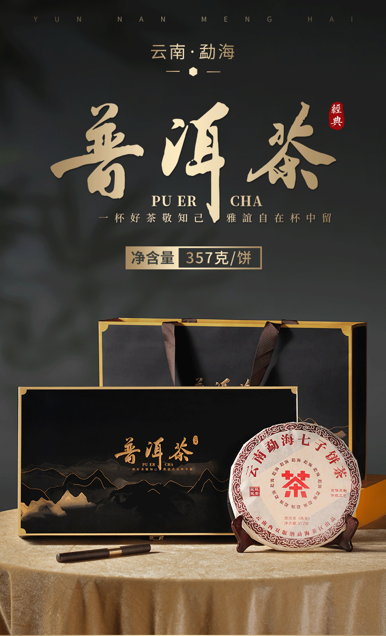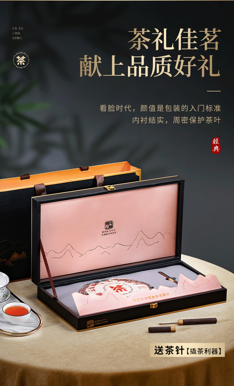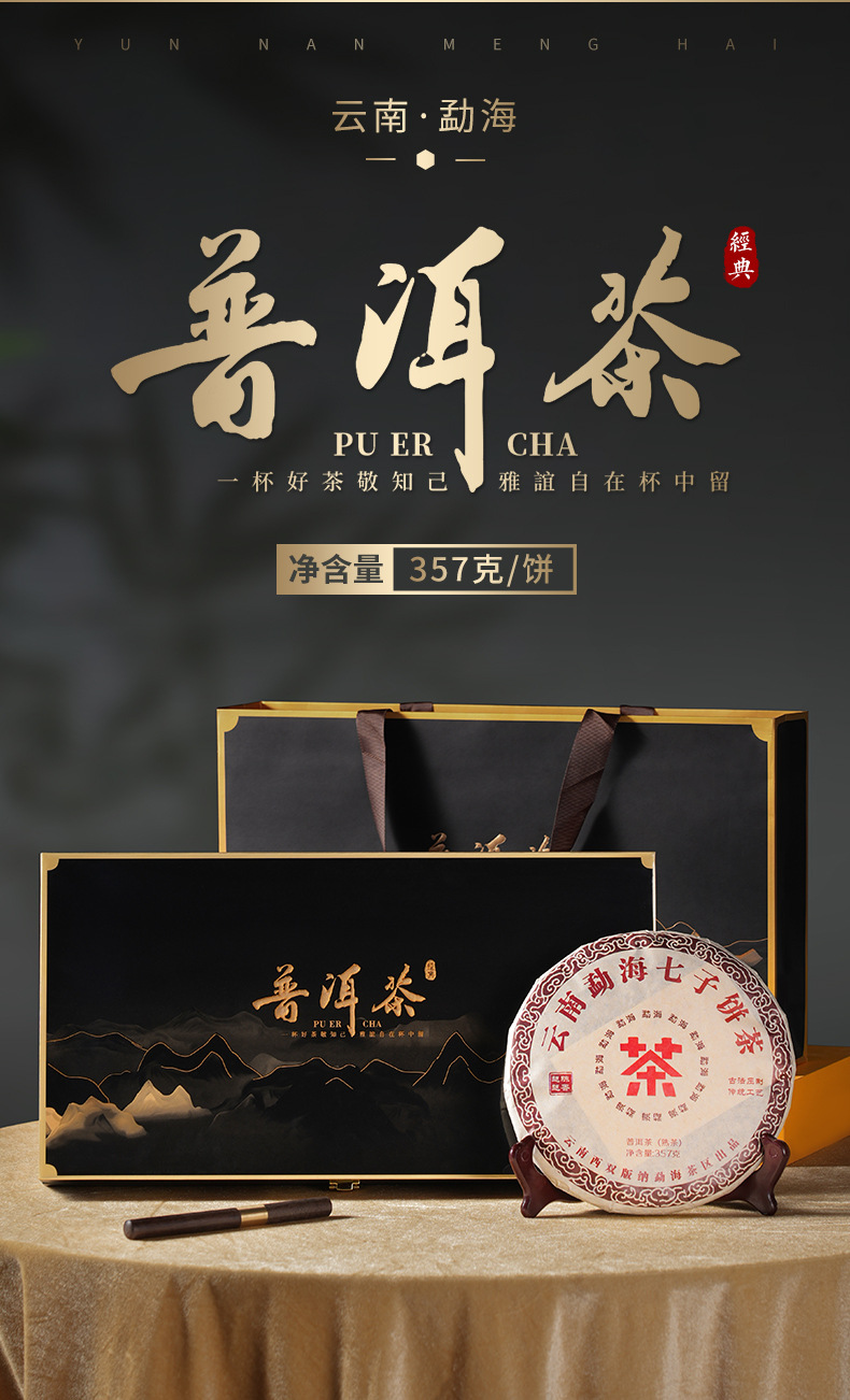 商品名称:云南普洱茶熟茶饼357g茶叶礼盒装过年礼品高档商务送礼伴手礼批发