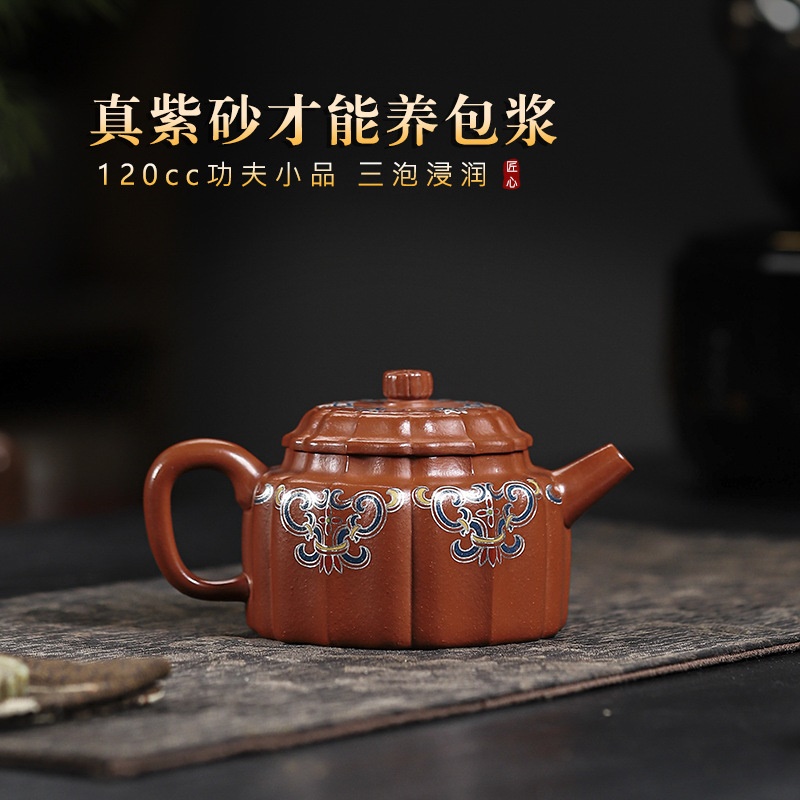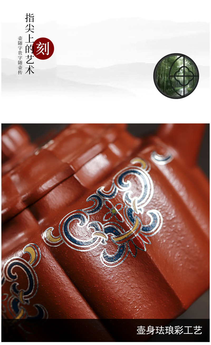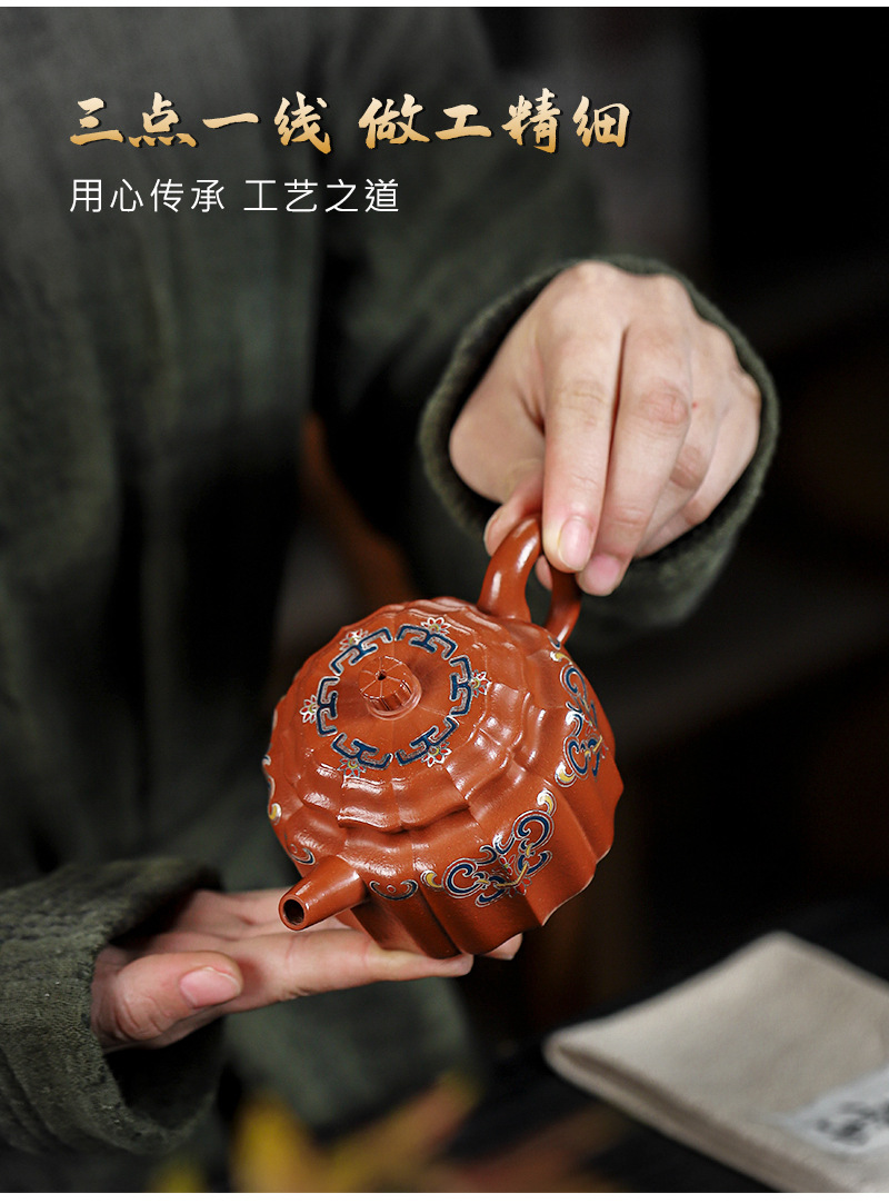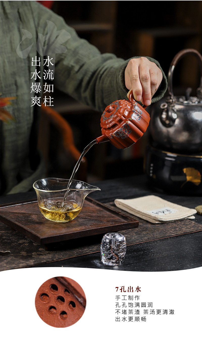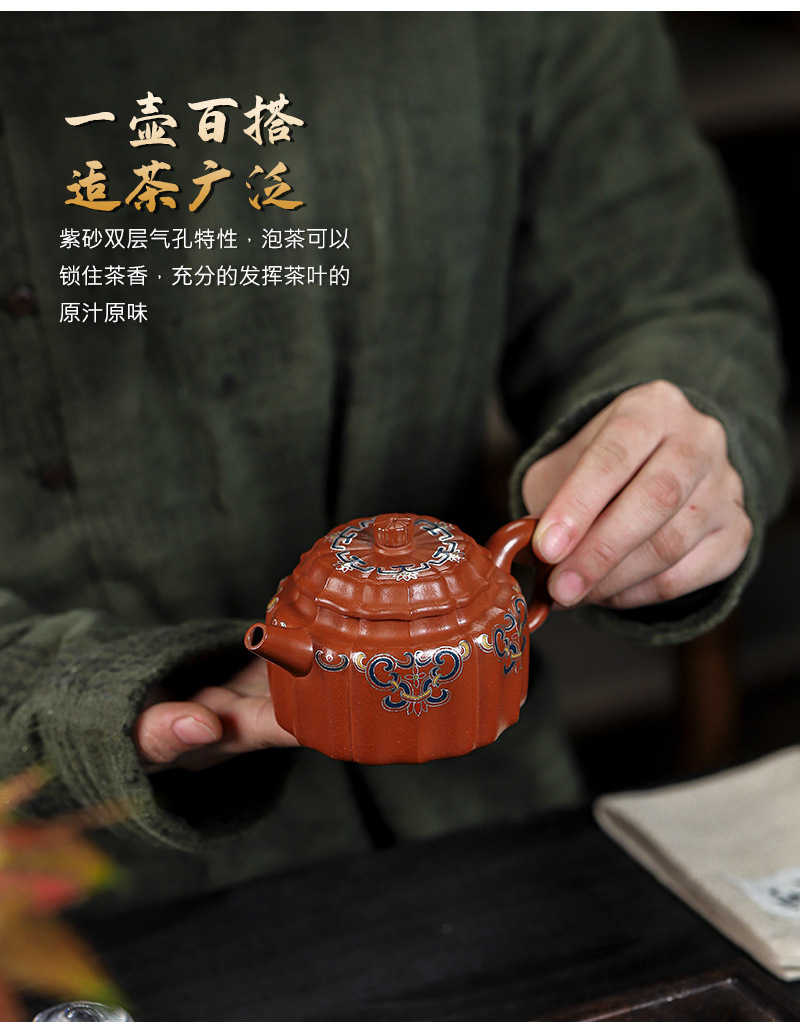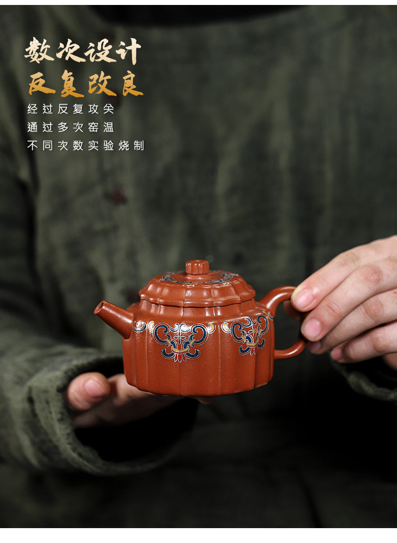 宜兴手工紫砂壶小煤窑朱泥五彩德钟泡茶壶证书全功夫茶具