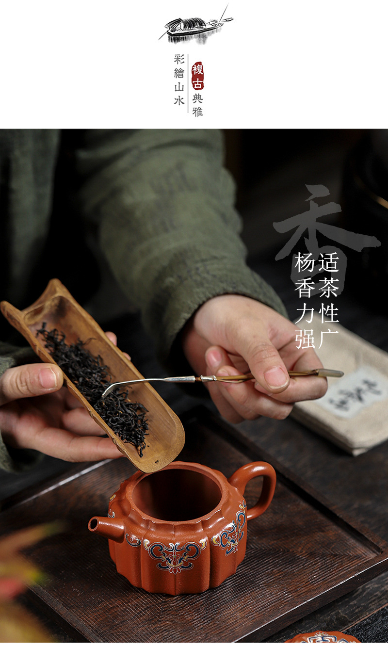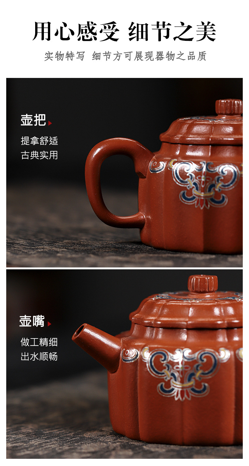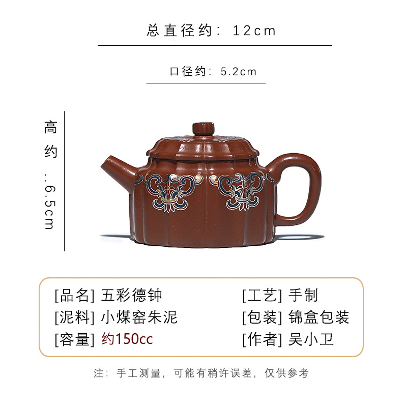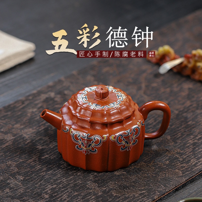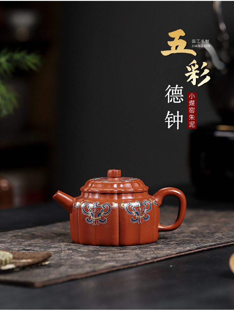 商品名称:宜兴手工紫砂壶小煤窑朱泥五彩德钟泡茶壶证书全功夫茶具