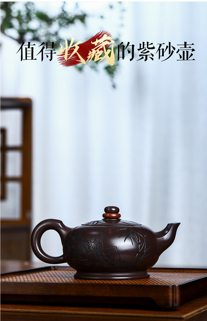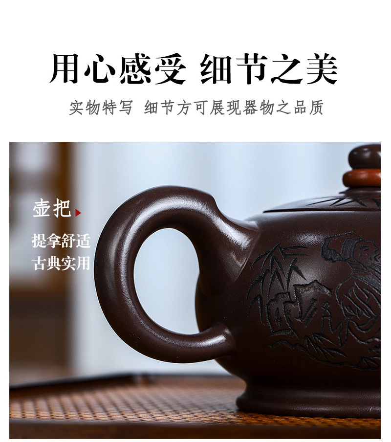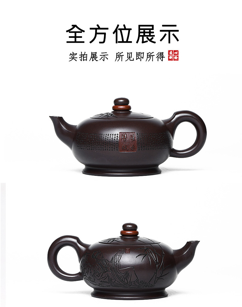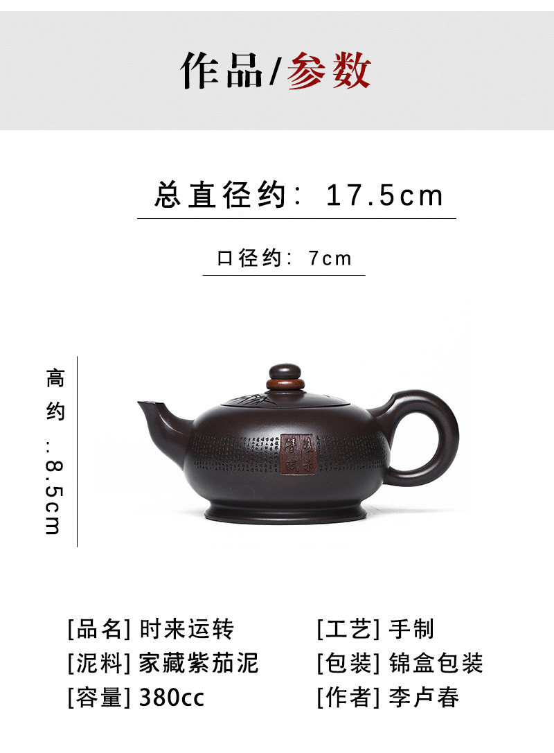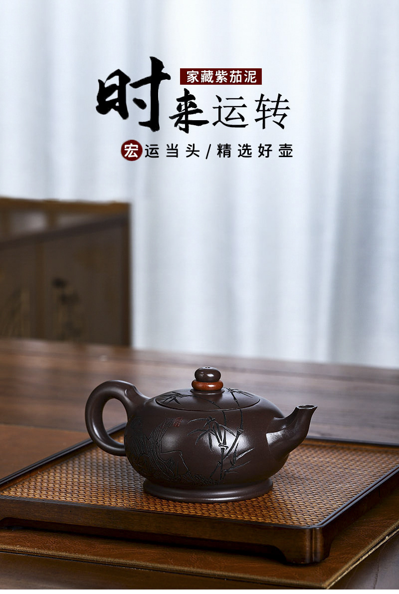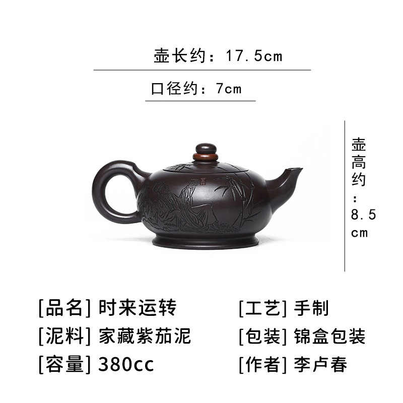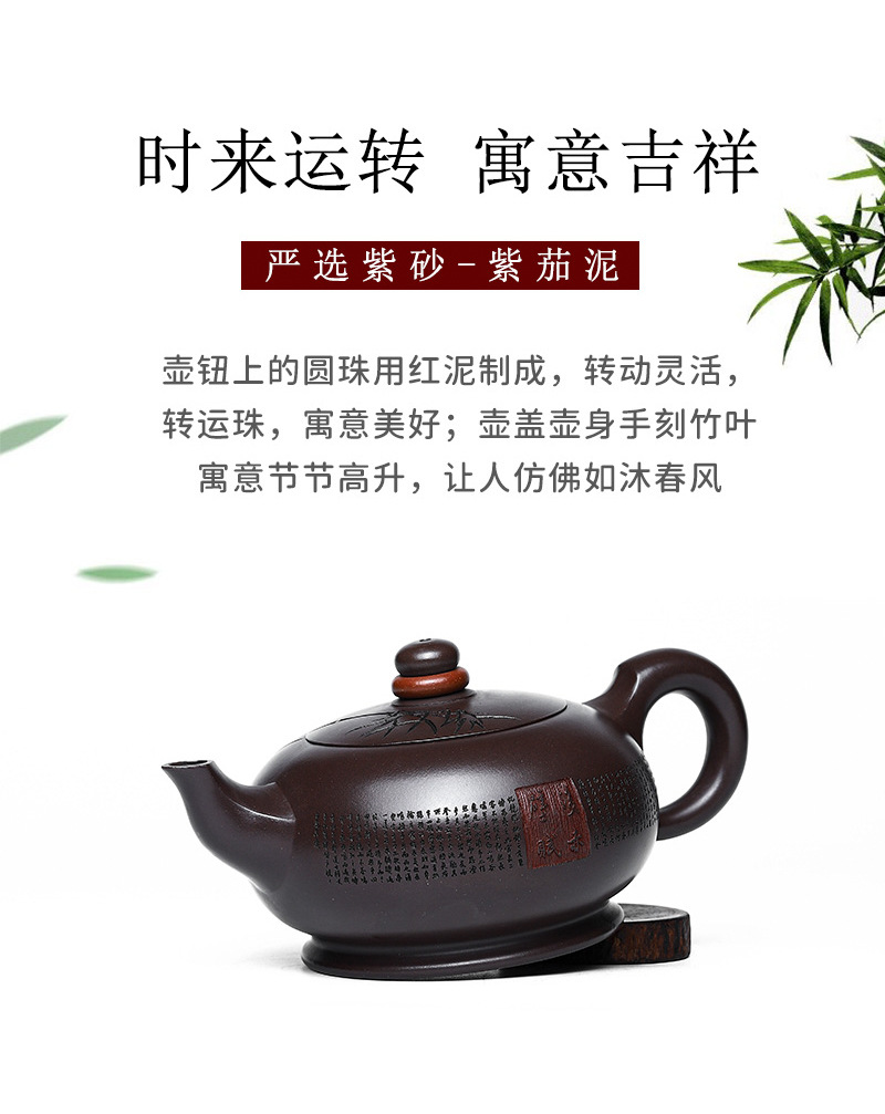 商品名称:宜兴名家手工家藏紫砂壶紫茄泥时来运转泡茶壶茶具茶壶出水爆爽