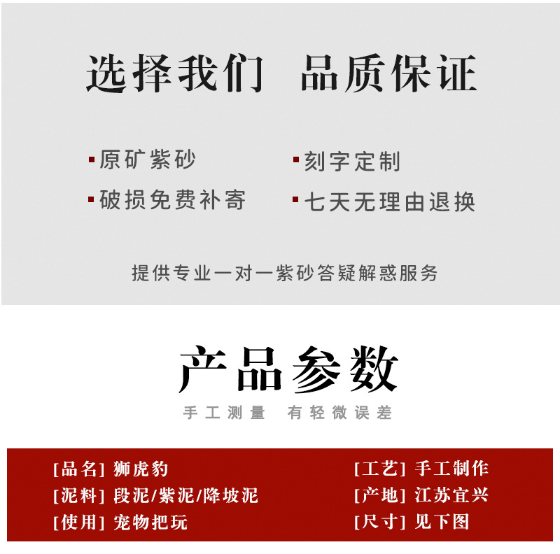 商品名称:宜兴手工紫砂茶宠摆件家藏紫砂狮虎豹功夫茶具配件可爱茶