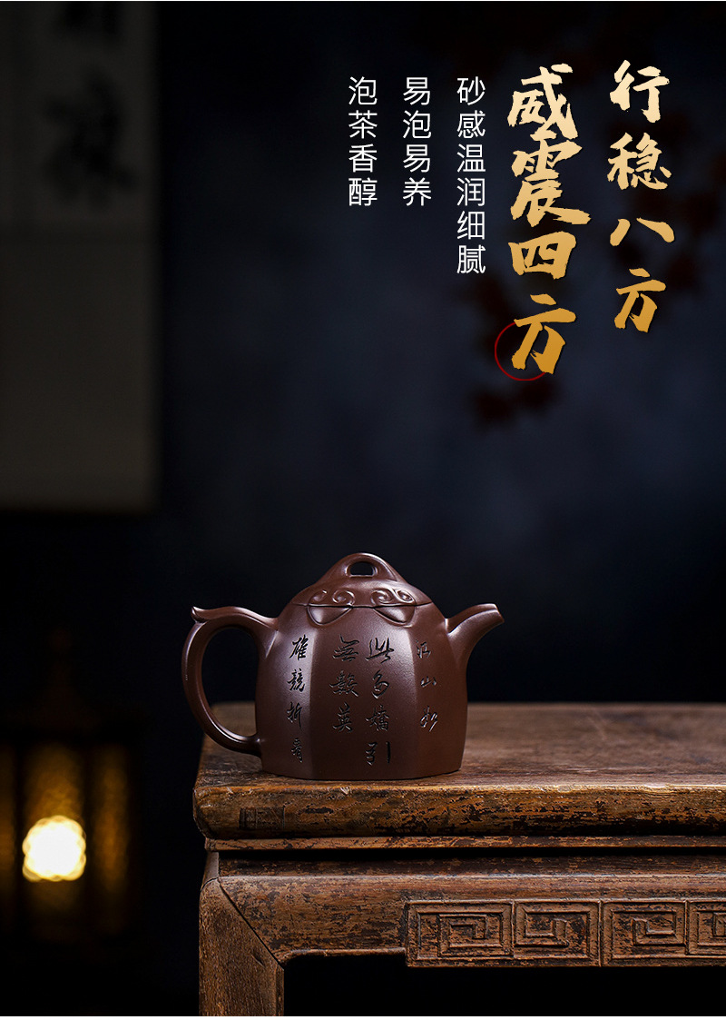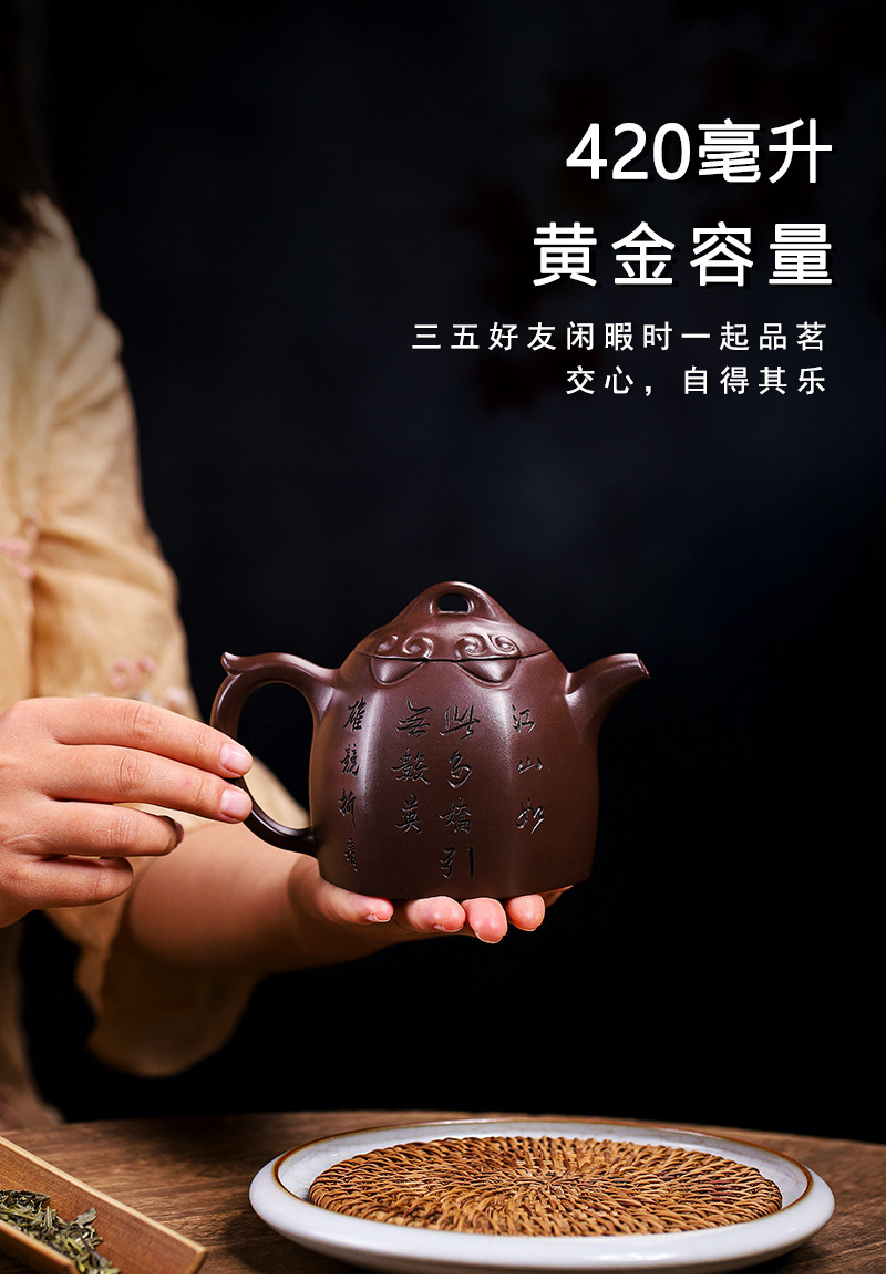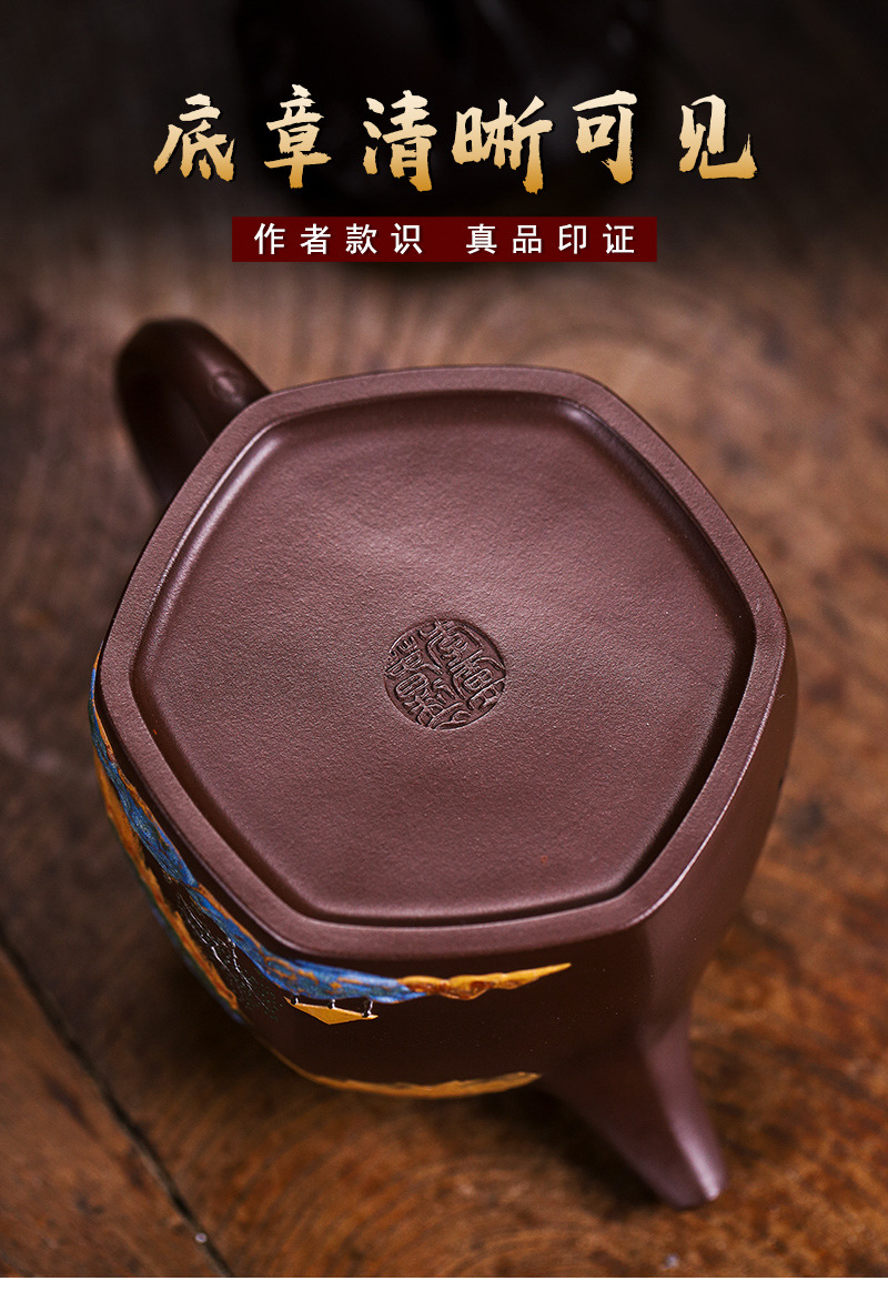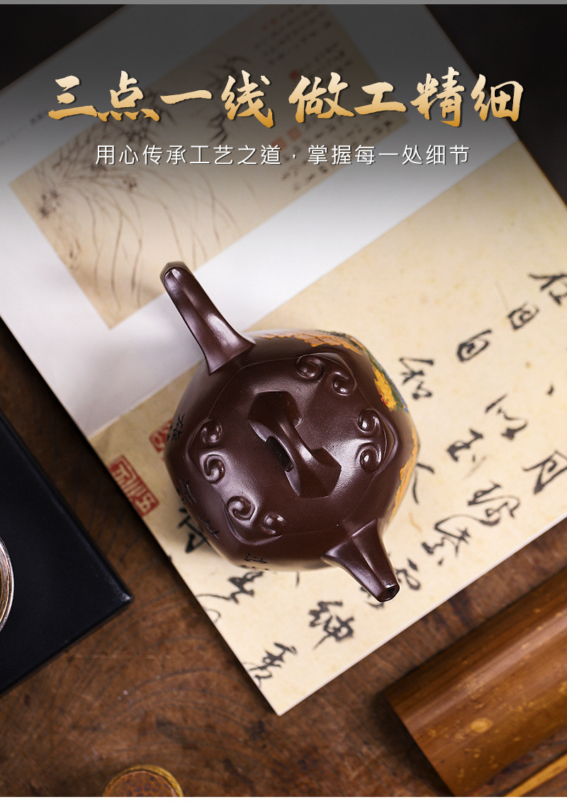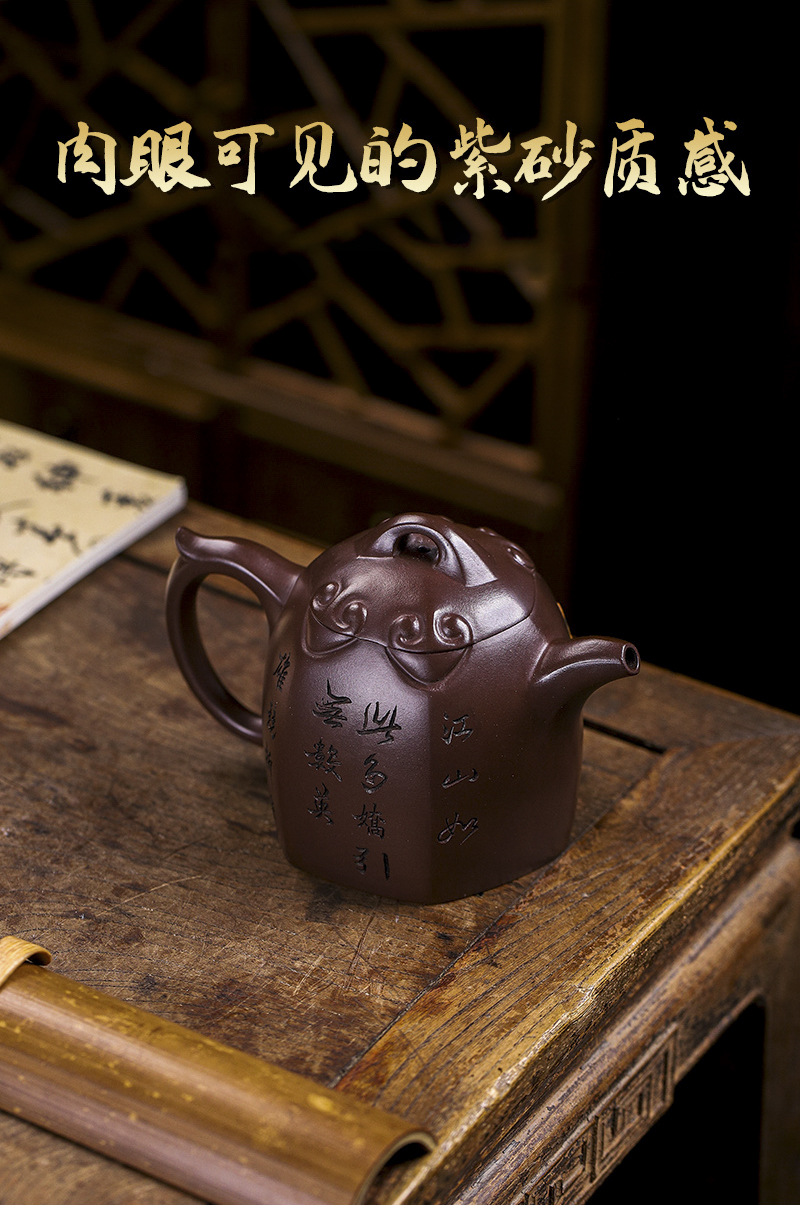 商品名称:宜兴手工紫砂壶家藏紫茄泥山水秦权堆绘易包浆出水暴爽泡茶养生壶