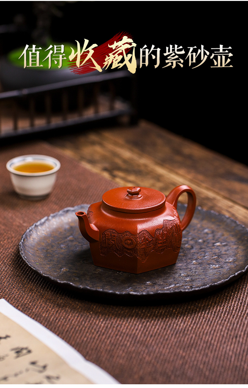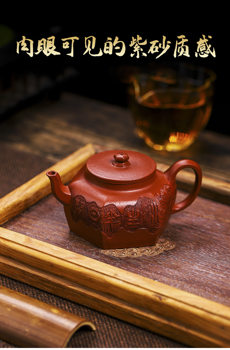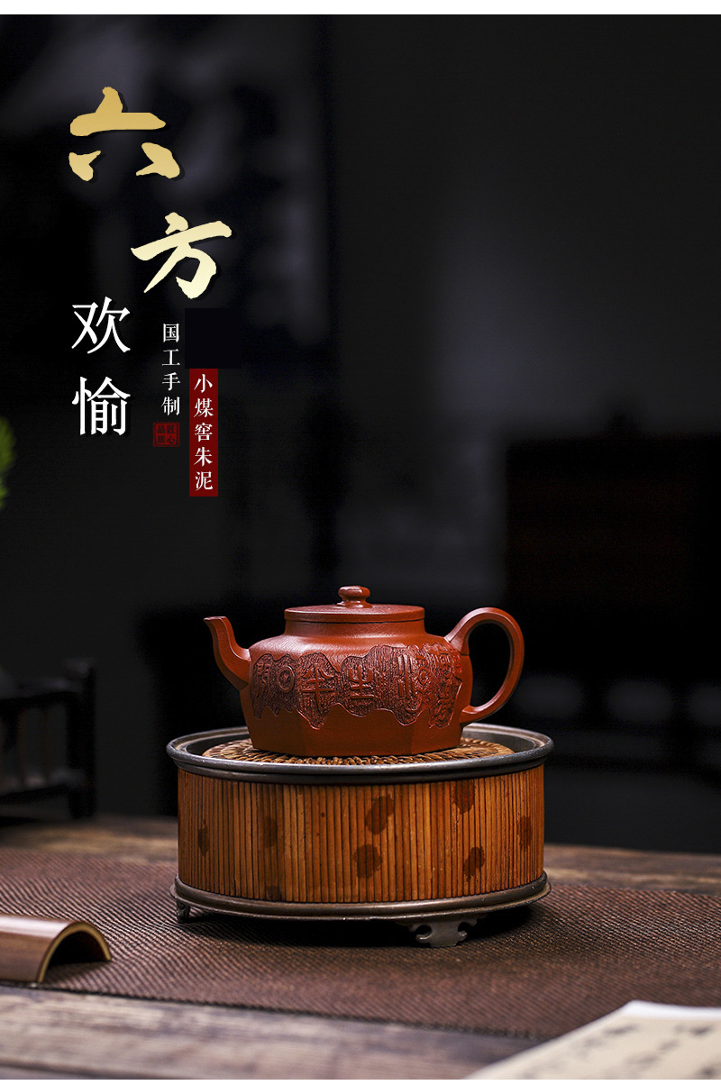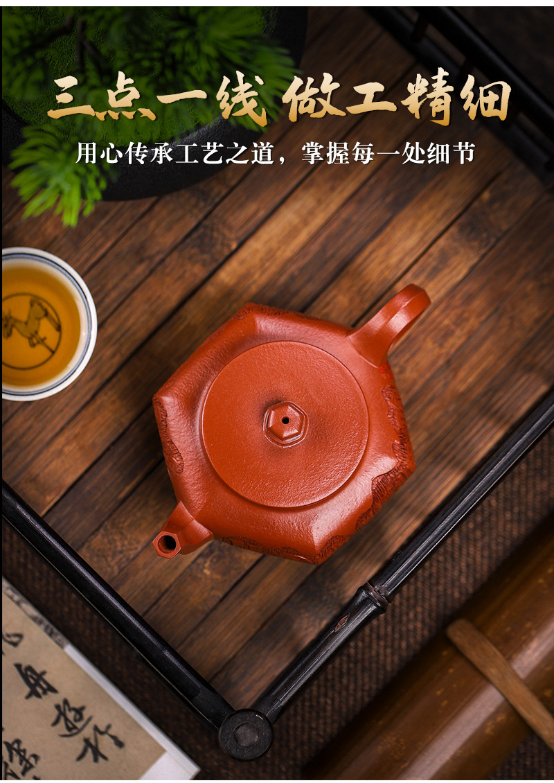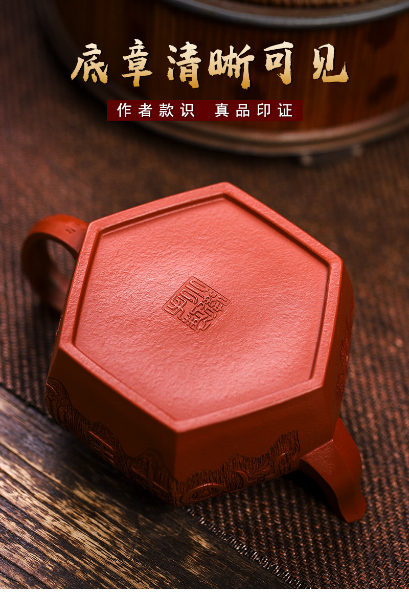 商品名称:宜兴手工紫砂壶证书家藏小煤窑朱泥六方欢愉包浆出水暴爽滴水不漏