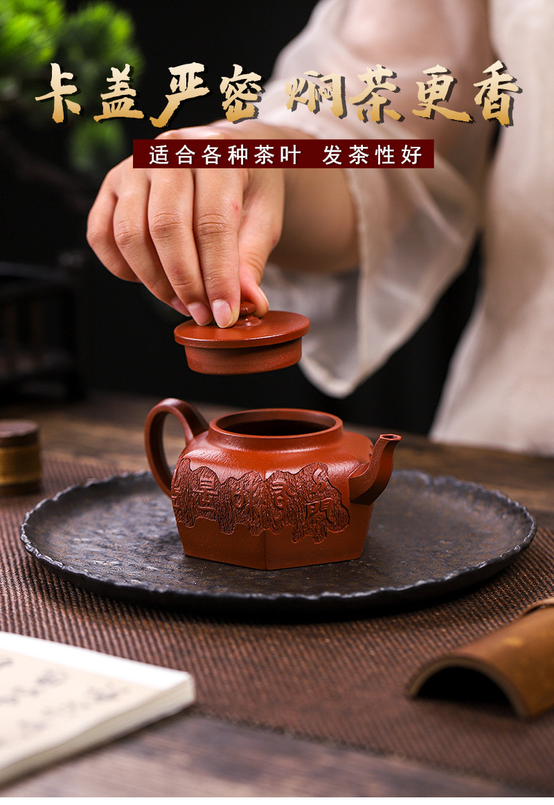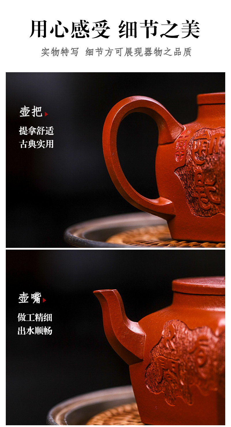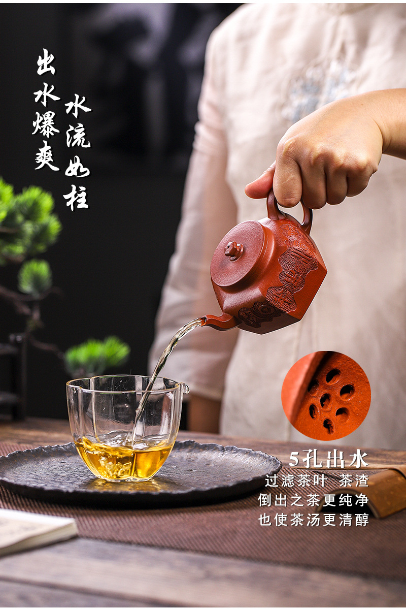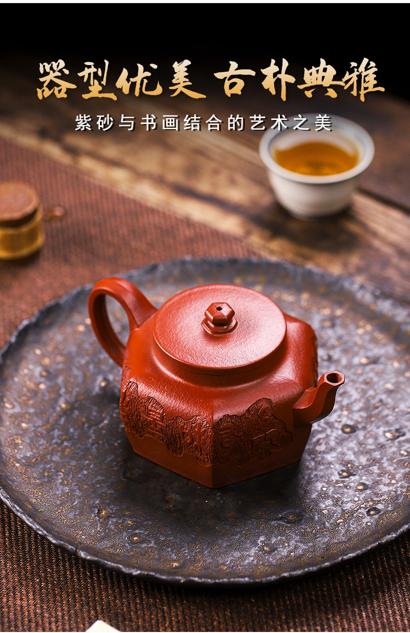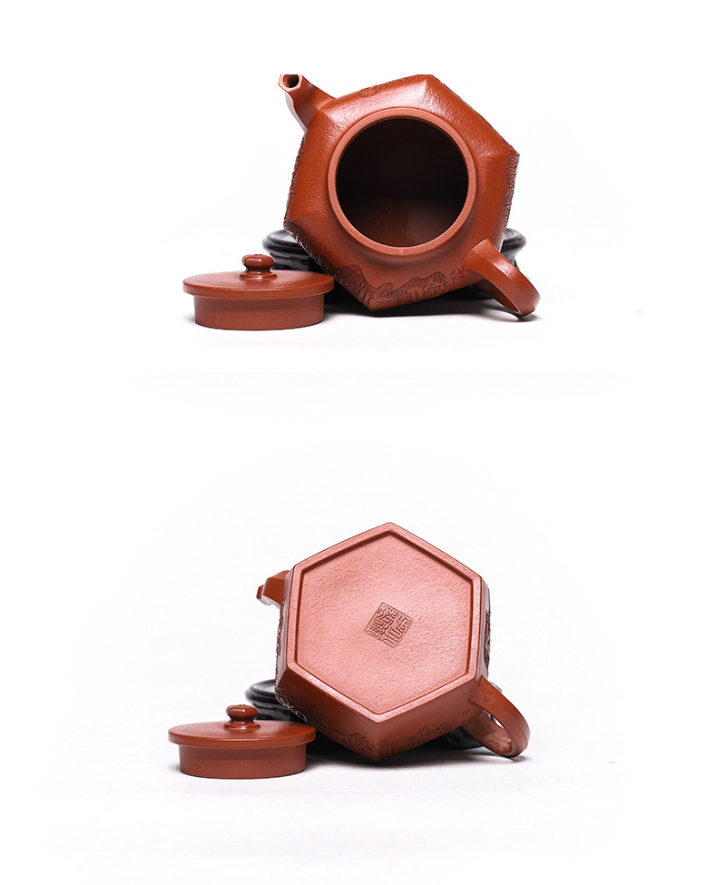 商品名称:宜兴手工紫砂壶证书家藏小煤窑朱泥六方欢愉包浆出水暴爽滴水不漏