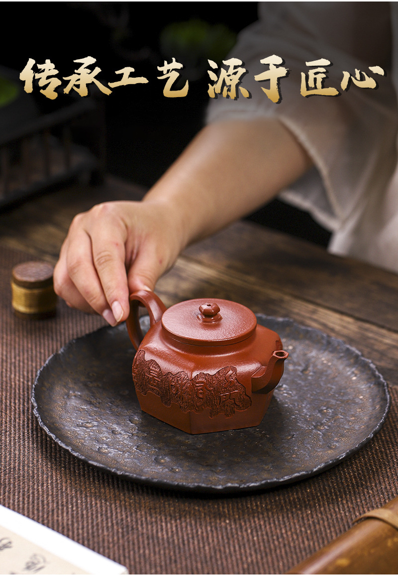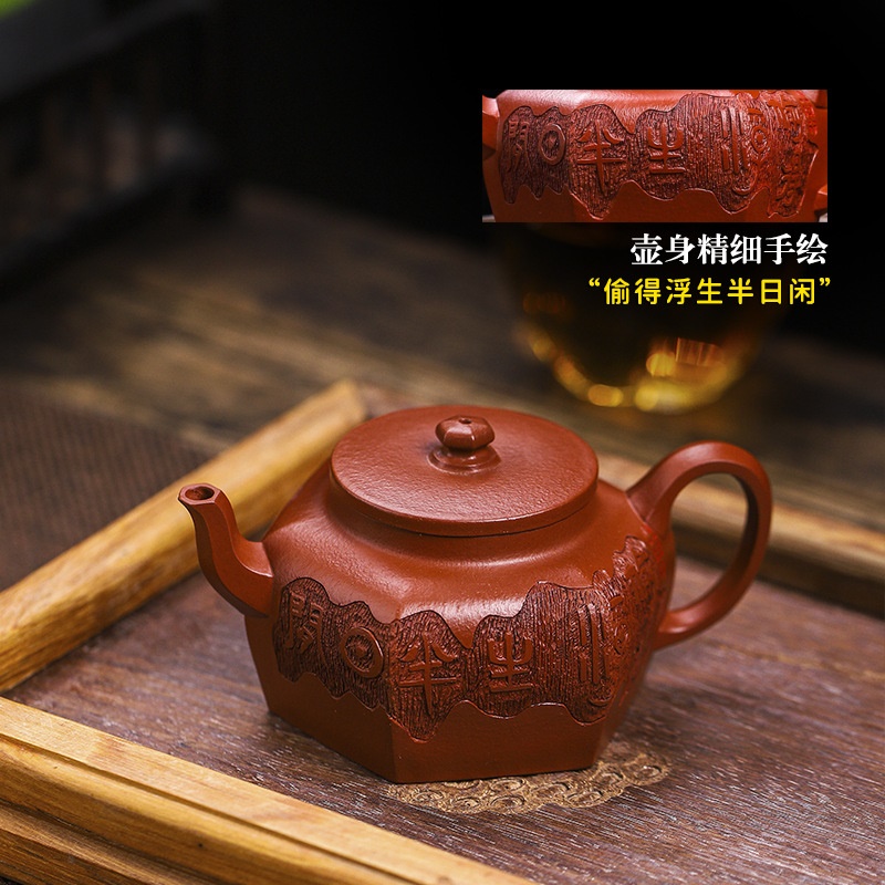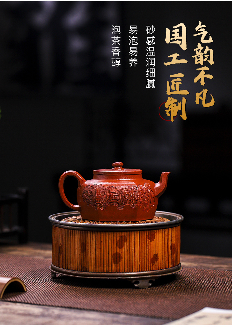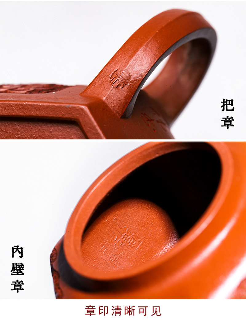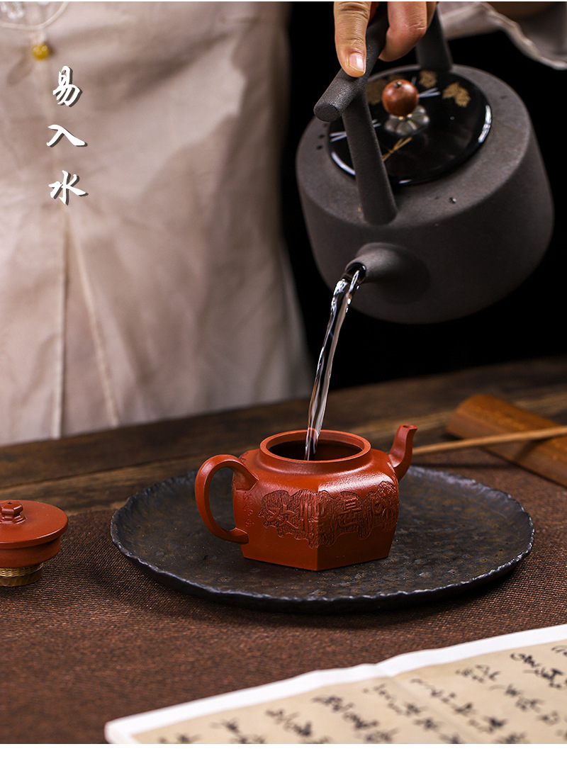 商品名称:宜兴手工紫砂壶证书家藏小煤窑朱泥六方欢愉包浆出水暴爽滴水不漏