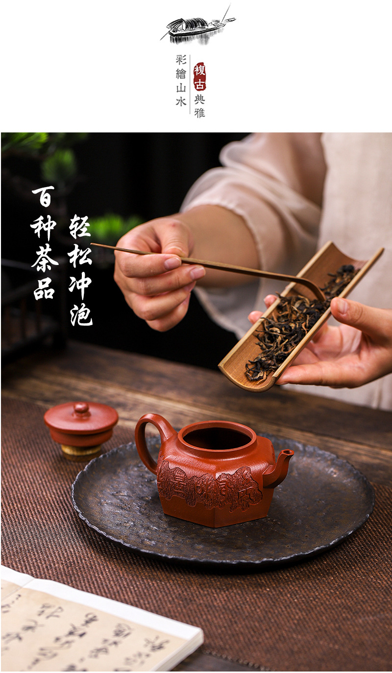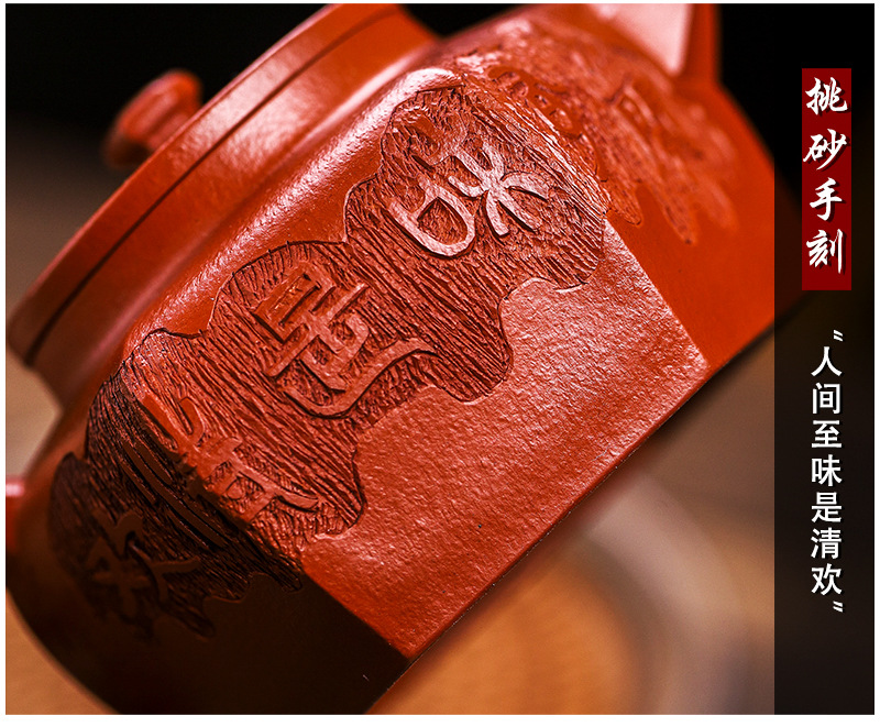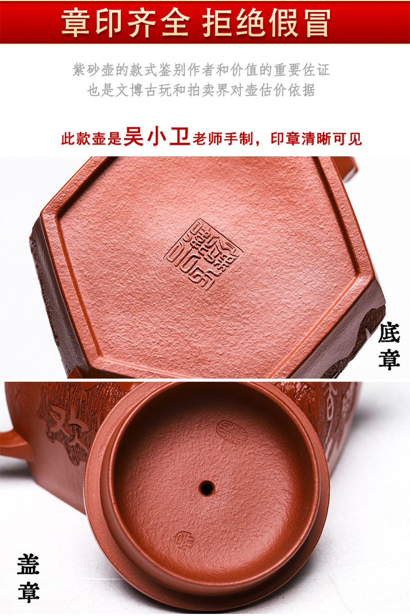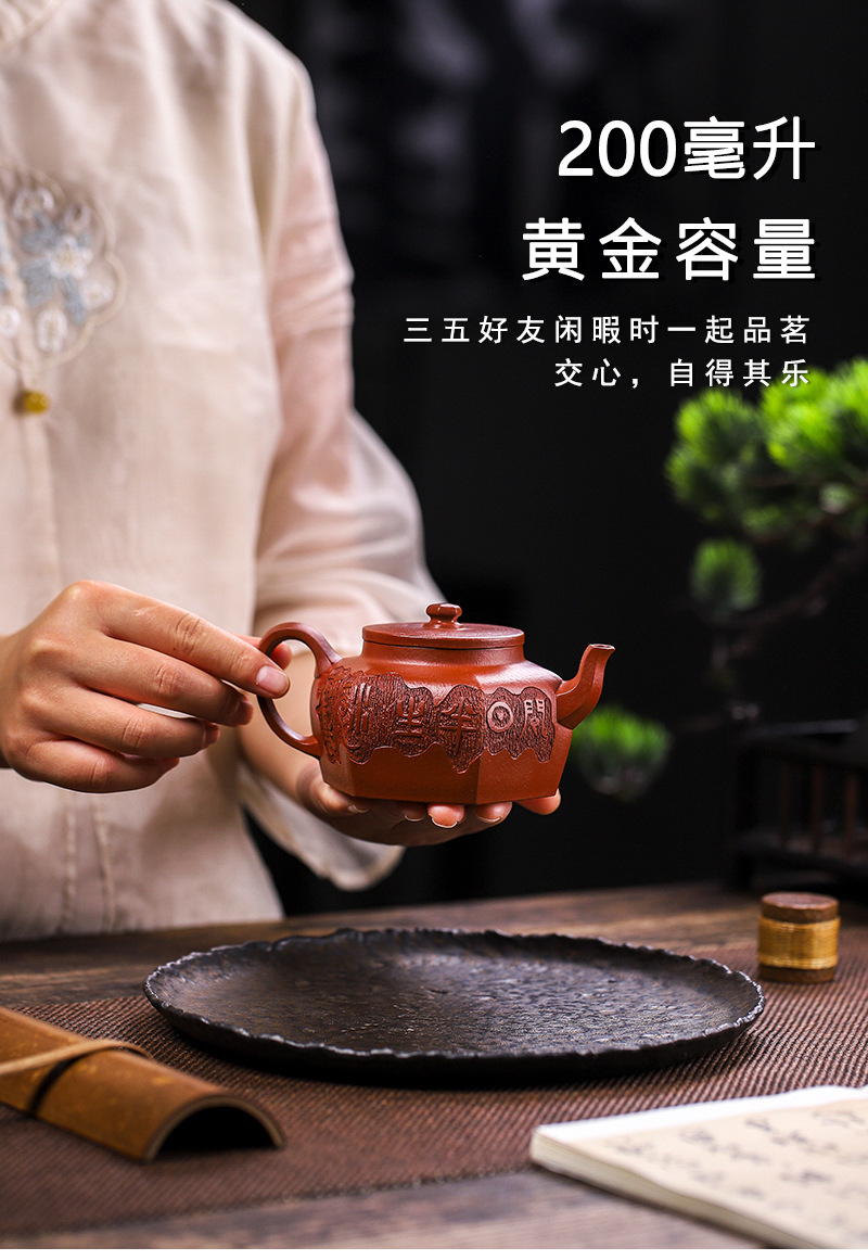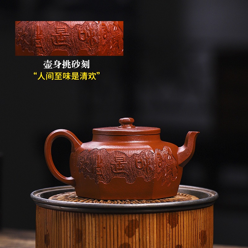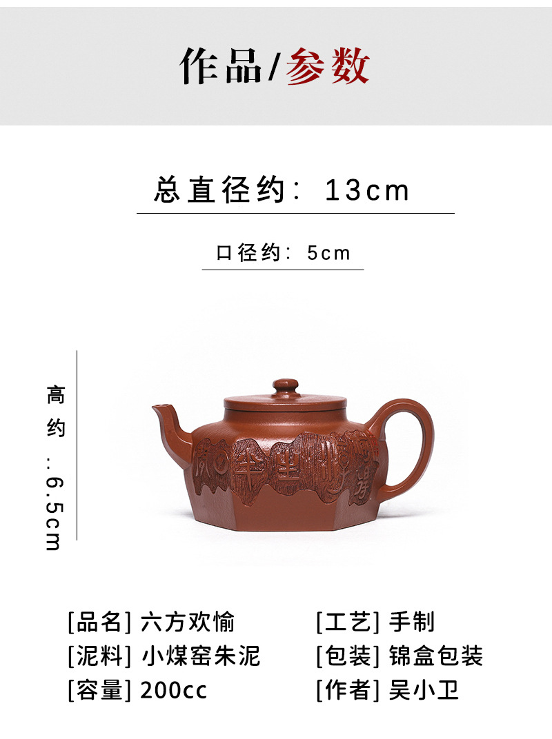 商品名称:宜兴手工紫砂壶证书家藏小煤窑朱泥六方欢愉包浆出水暴爽滴水不漏