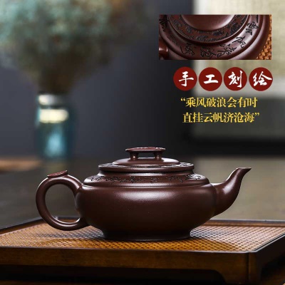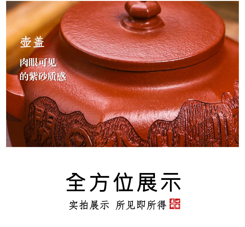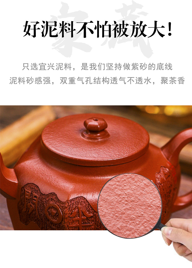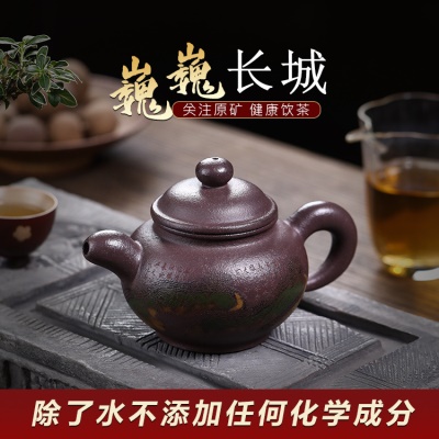 宜兴原矿无添加手工紫砂壶巍巍长城30目金砂紫泥家用茶具茶壶泡茶
