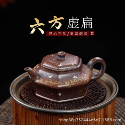宜兴手工紫砂壶段泥柴烧六方虚扁证书齐全国工手制家用茶具茶壶