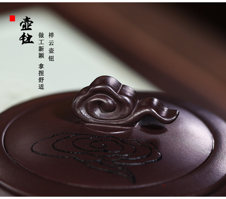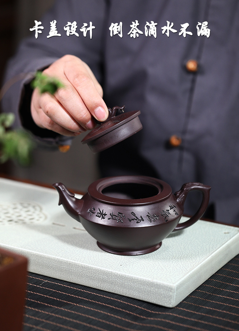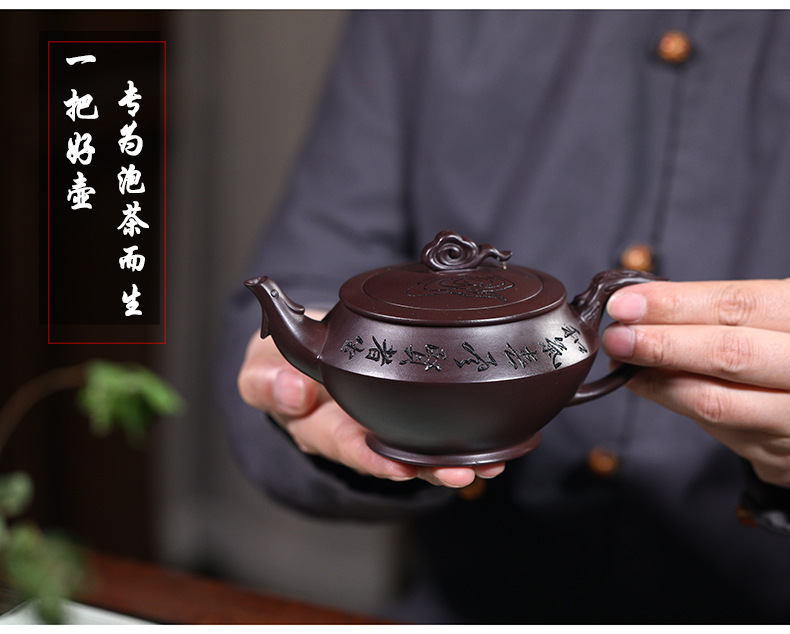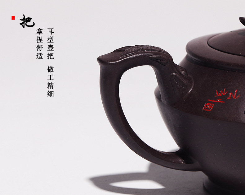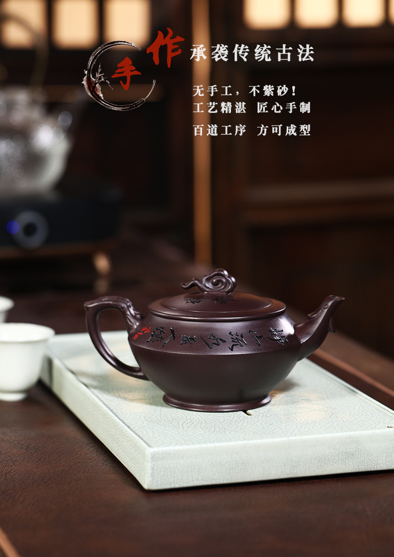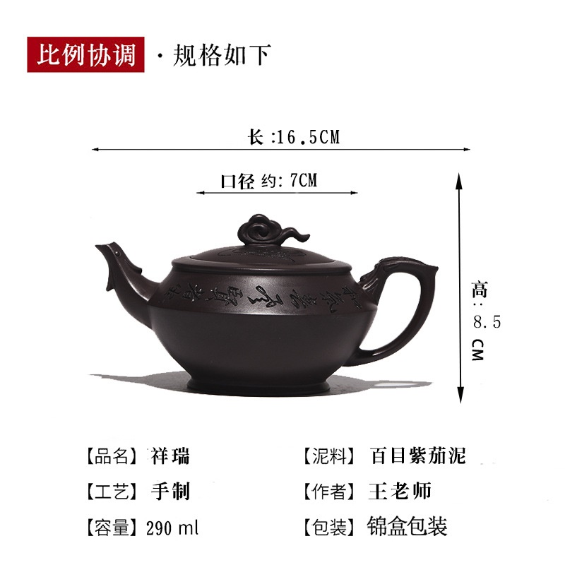 商品名称:宜兴手工紫砂壶证书全百目紫茄泥祥瑞易包浆 出水暴爽不漏水