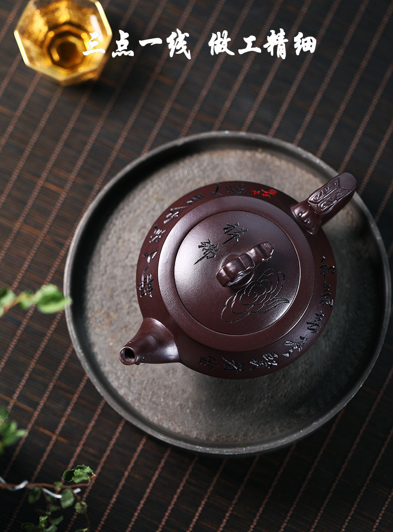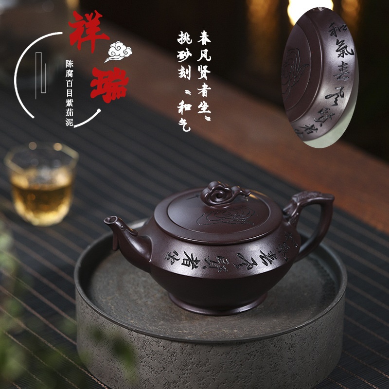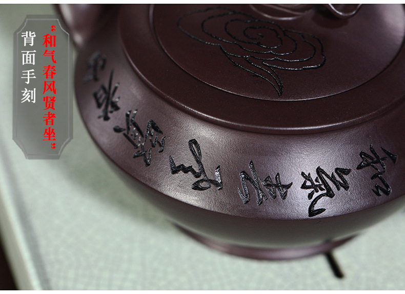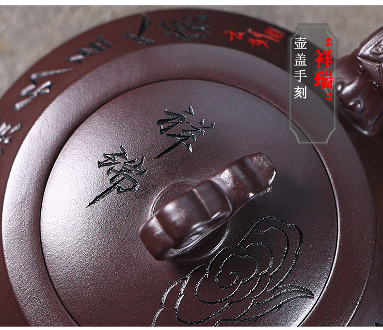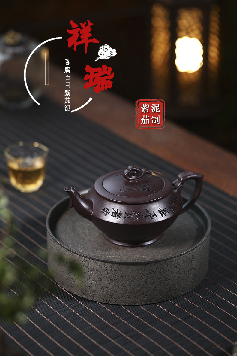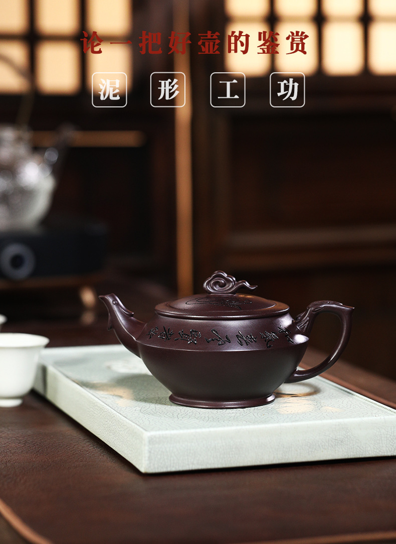 商品名称:宜兴手工紫砂壶证书全百目紫茄泥祥瑞易包浆 出水暴爽不漏水