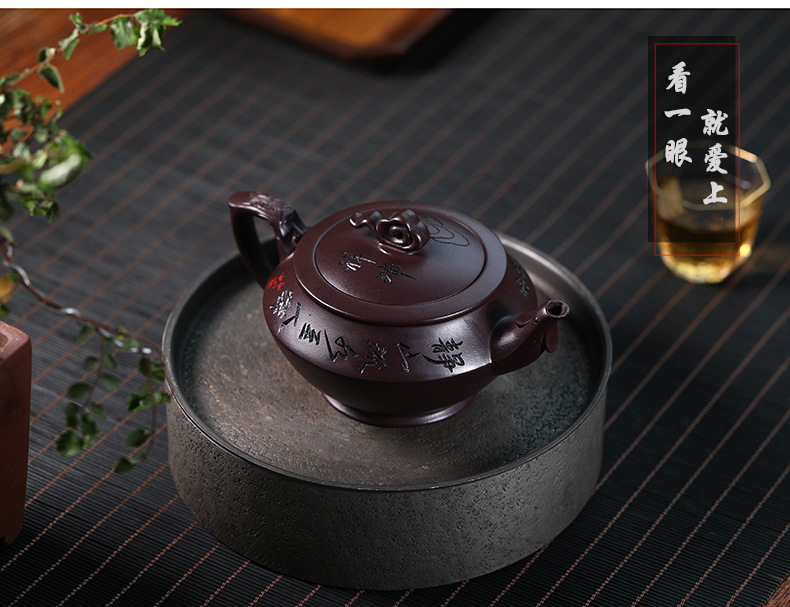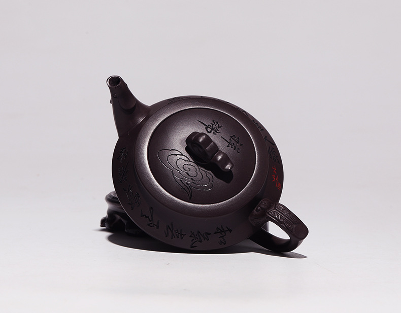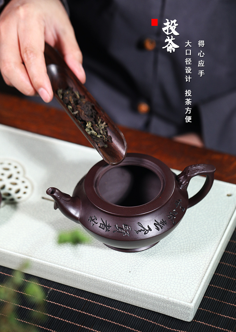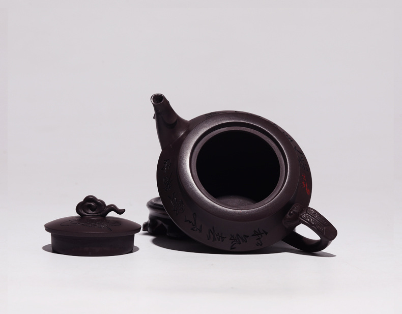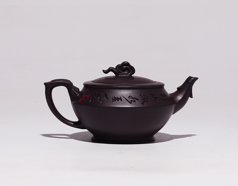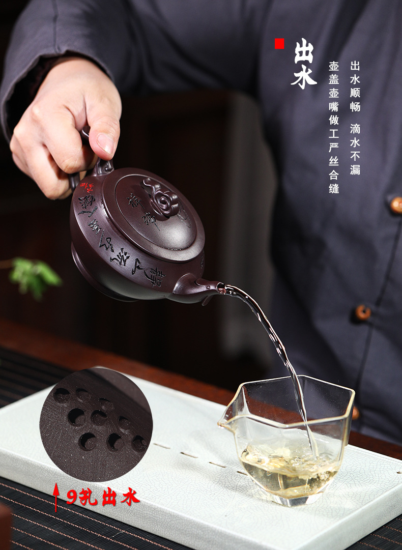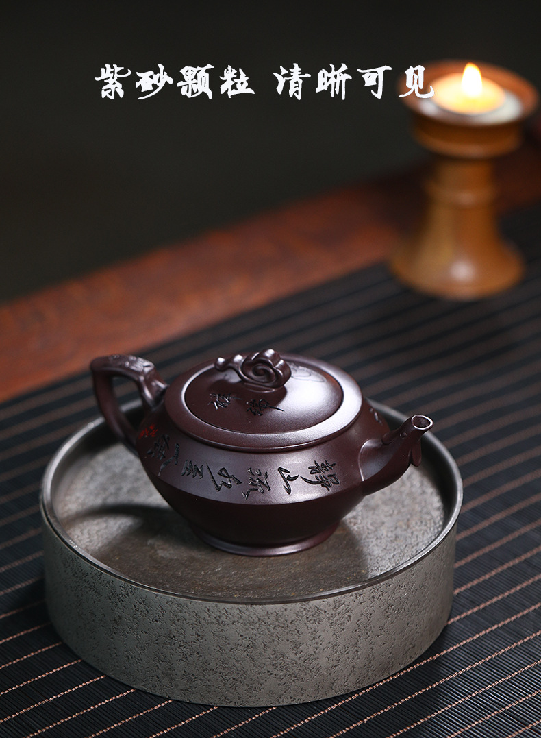 商品名称:宜兴手工紫砂壶证书全百目紫茄泥祥瑞易包浆 出水暴爽不漏水