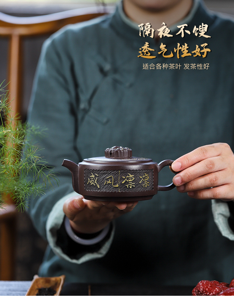宜兴手工紫砂壶家藏紫玉金砂四方金凤泡茶壶证书齐全