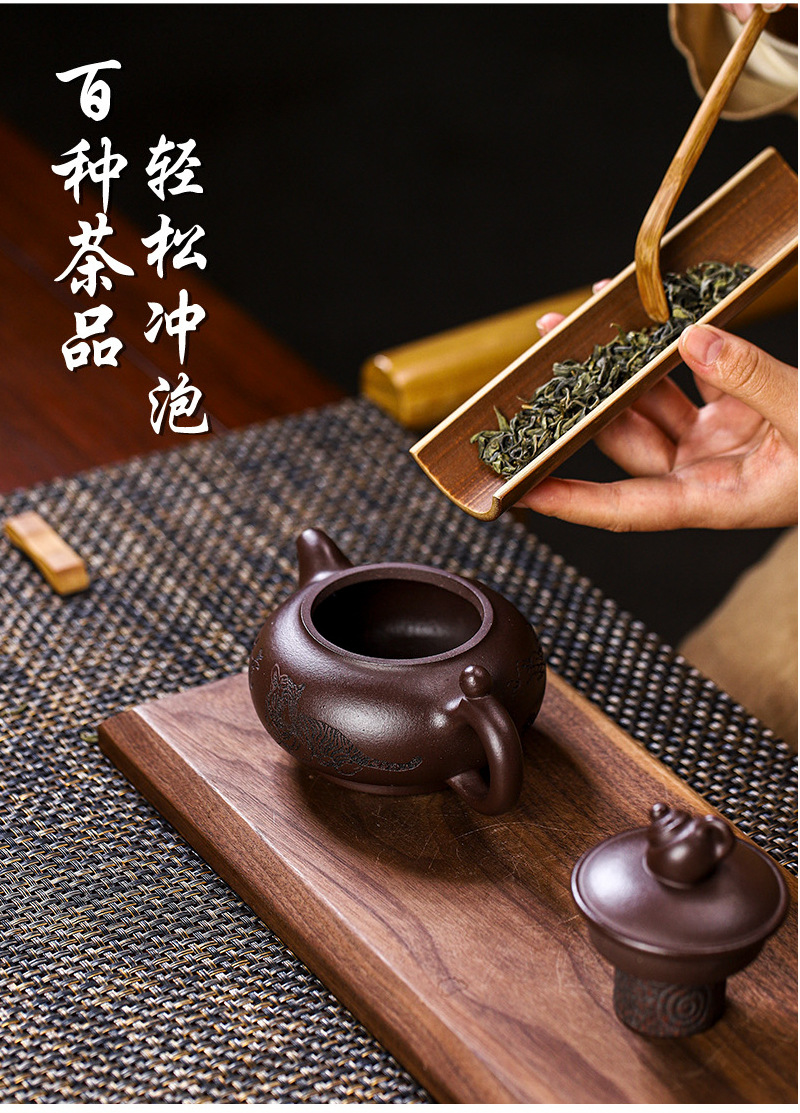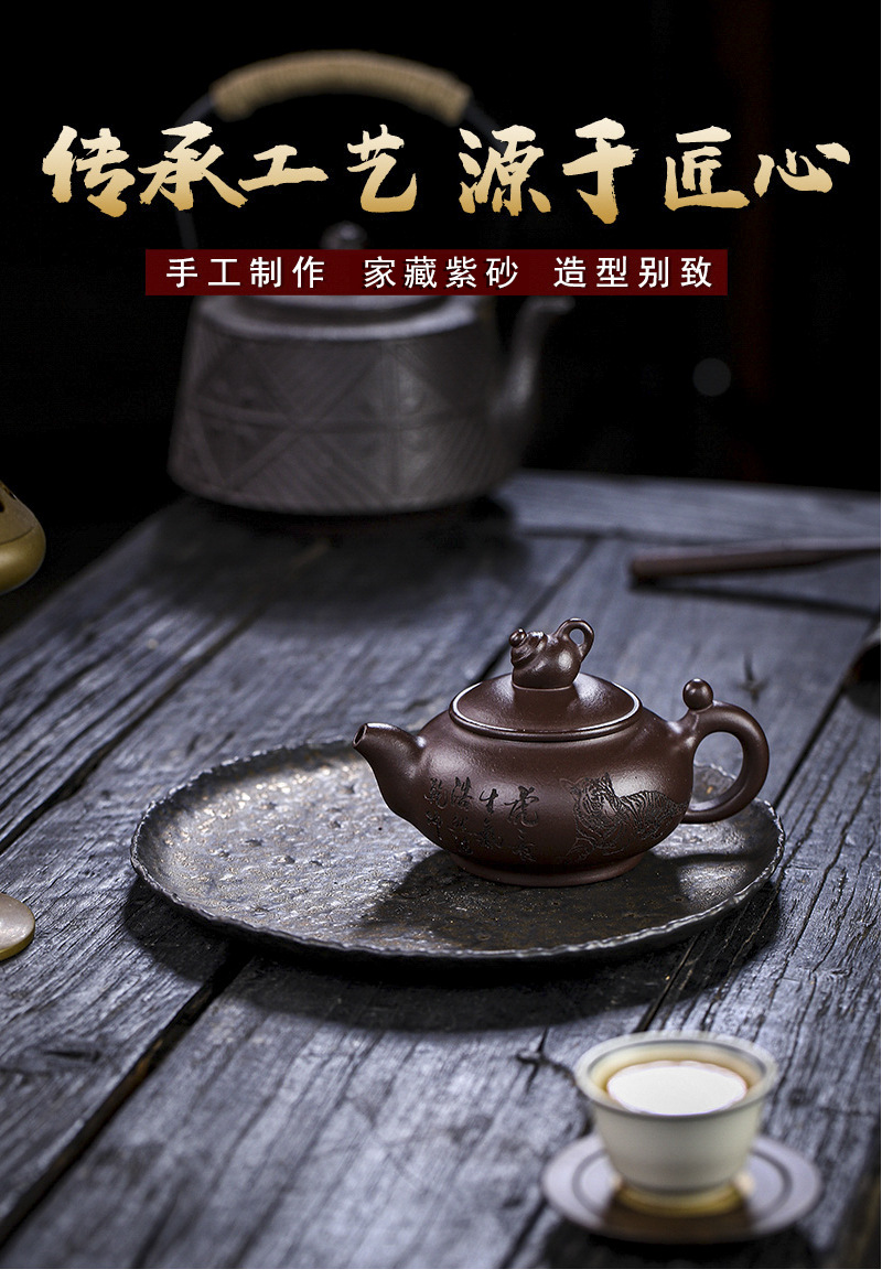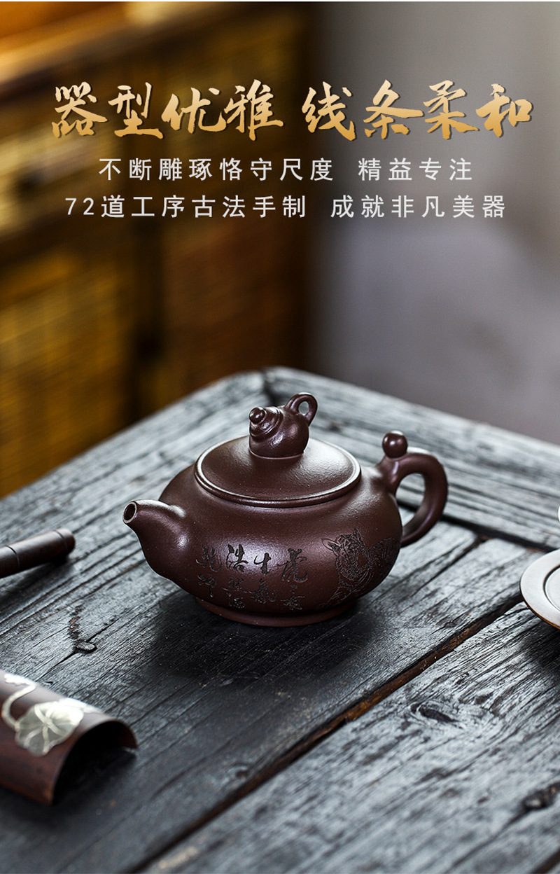 宜兴手工紫砂壶家藏黑罗兰吉祥笑樱证书齐全出水爆爽滴水不漏