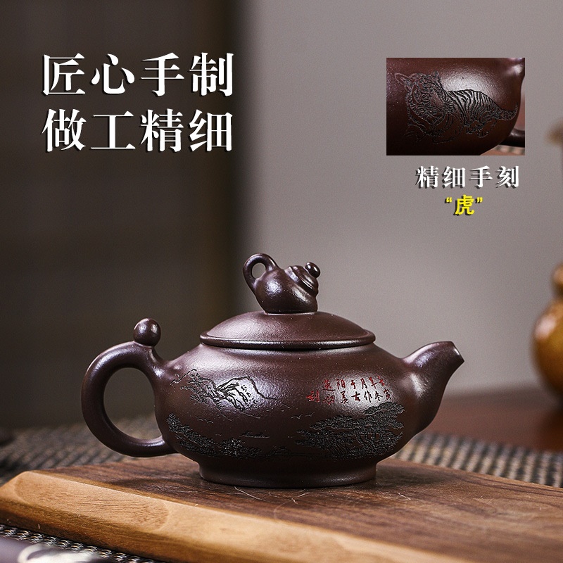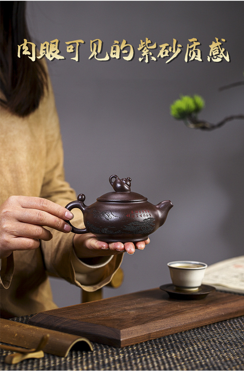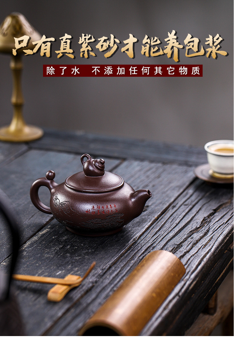 宜兴手工紫砂壶 礼盒证书齐全 登高望远 珍藏老紫泥 易包浆