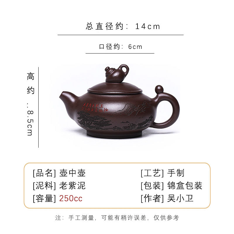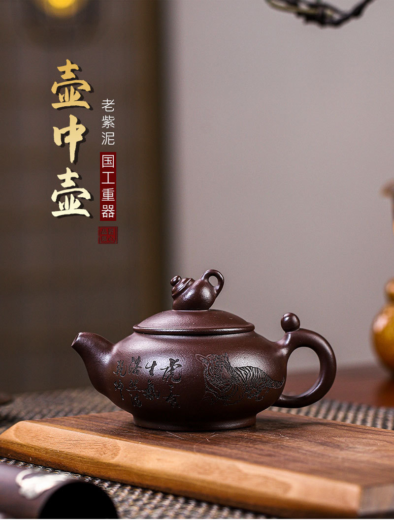 商品名称:宜兴手工紫砂壶证书全家藏老紫泥壶中壶易包浆出水暴爽滴水不漏