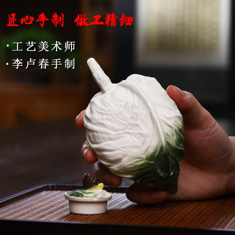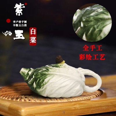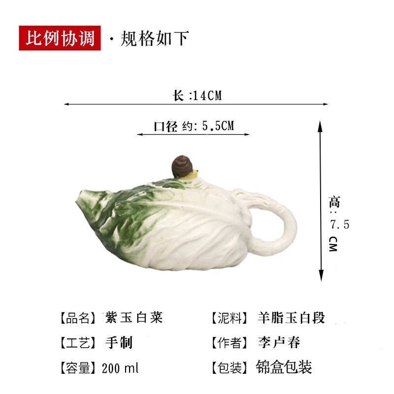 商品名称:宜兴手工紫砂壶证书全羊脂玉白段紫玉白菜易包浆出水暴爽滴水不漏