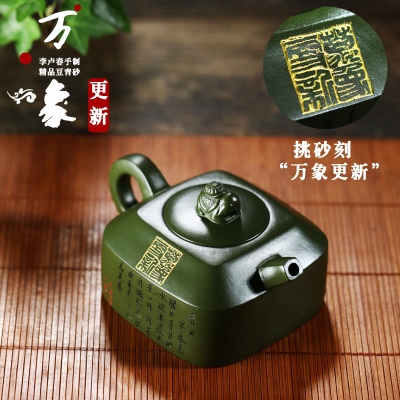 商品名称:宜兴手工紫砂壶证书全陈腐豆青砂万象更新易包浆出水暴爽滴水不漏