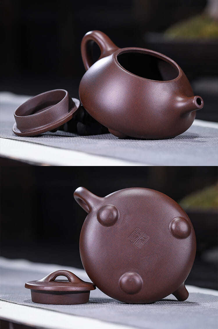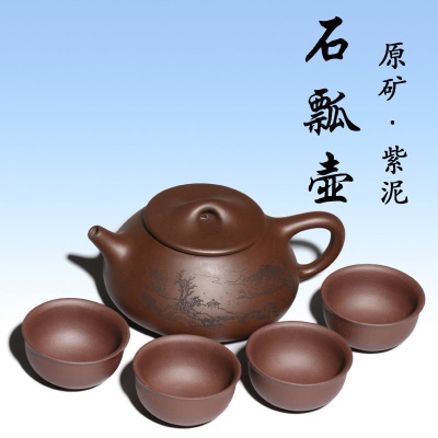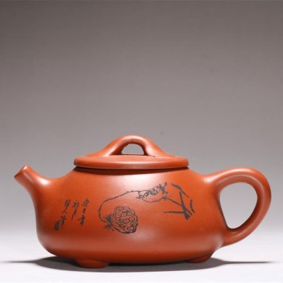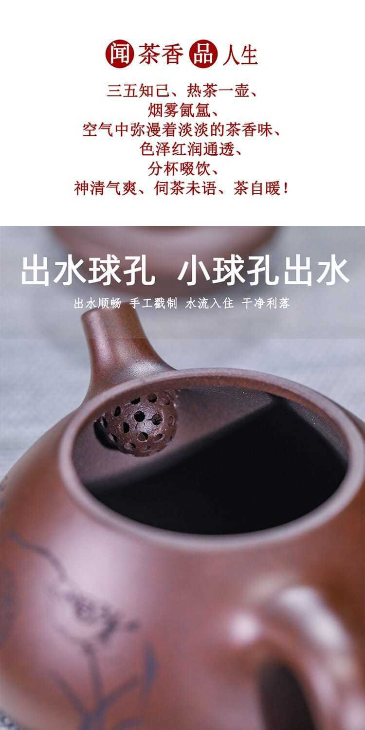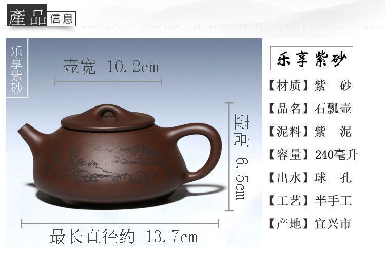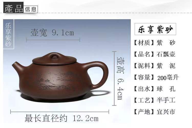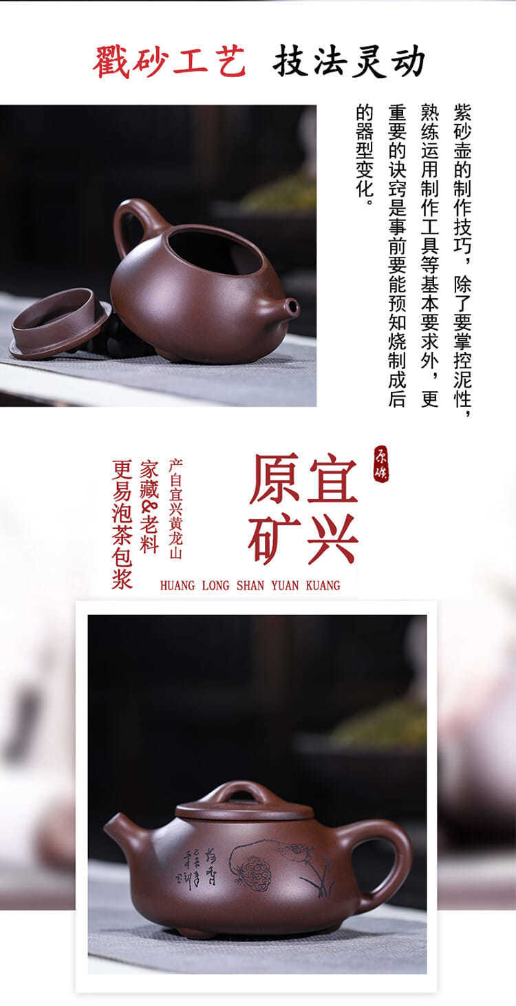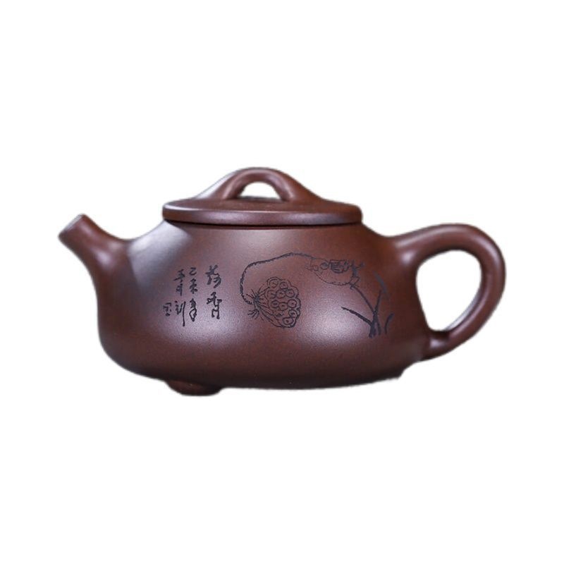 商品名称:宜兴正品原矿紫泥经典景舟石瓢翠鸟望莲240毫升 紫砂茶壶