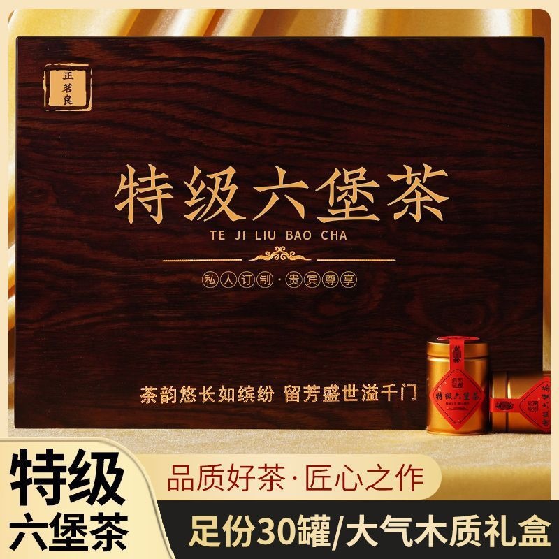 特级广西梧州黑茶30十年糯米陈年香金花六堡茶高档散小包罐礼盒装