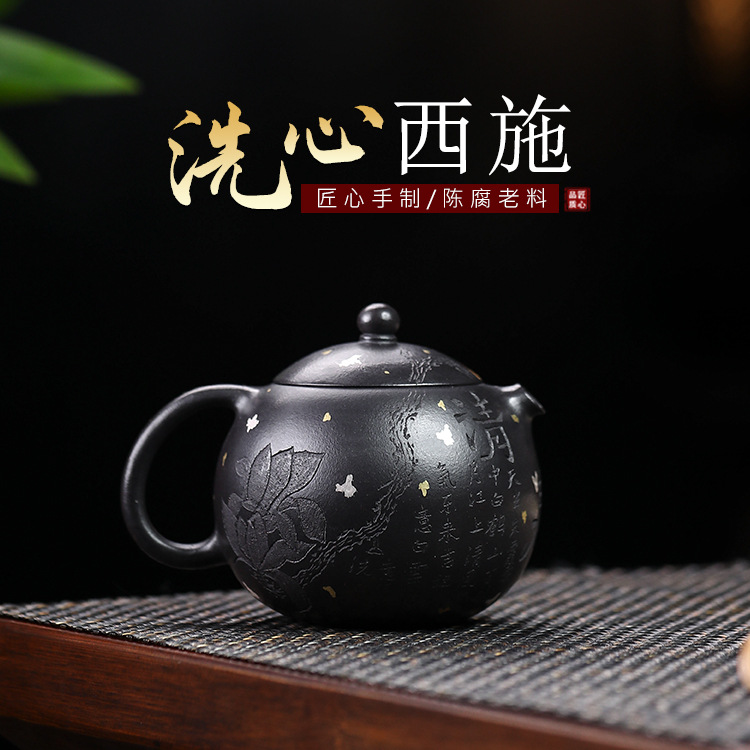 宜兴手工紫砂壶家藏黑罗兰洗心西施证书齐全出水爆爽滴水不漏