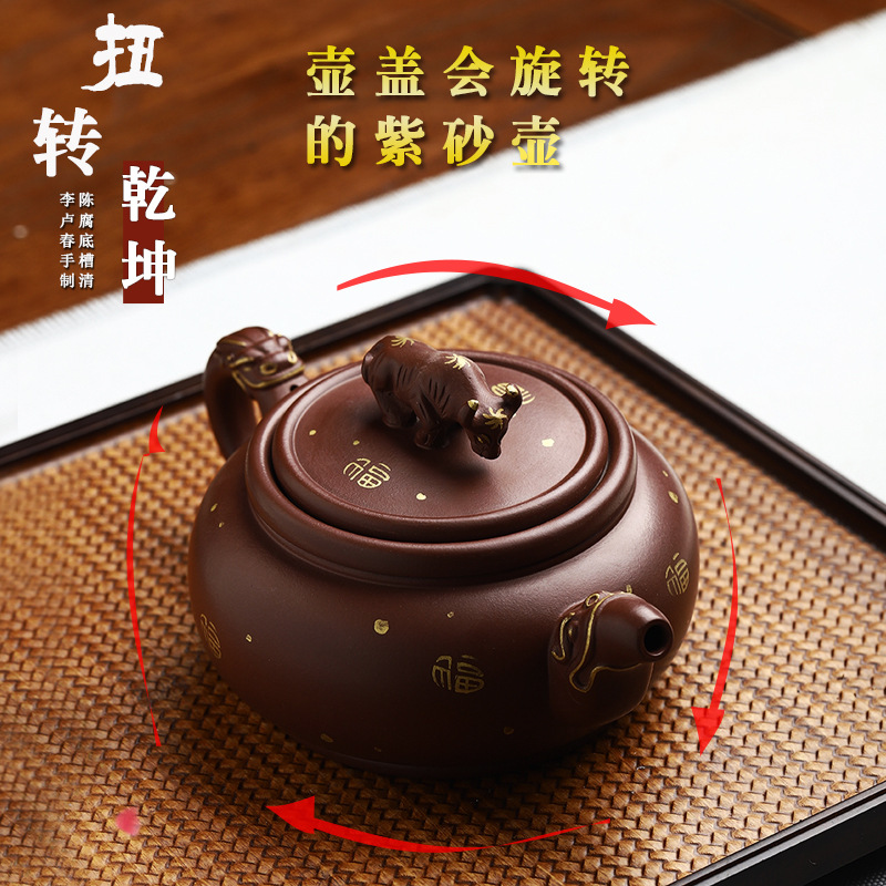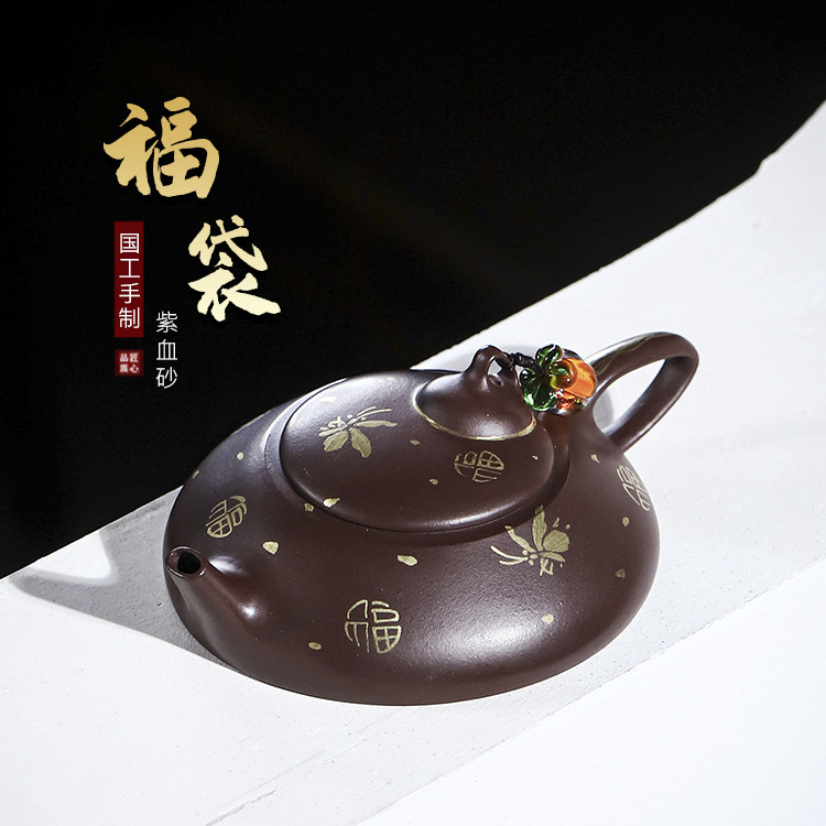 宜兴手工紫砂壶家藏龙血砂金纹如意泡茶壶家用茶具茶壶