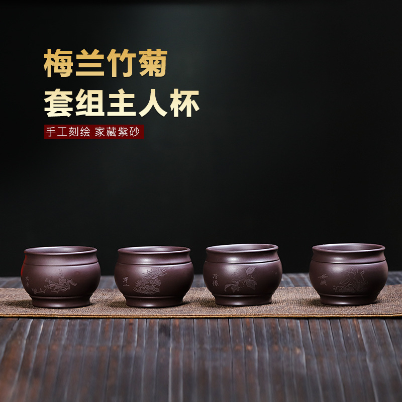 宜兴手工紫砂杯梅兰竹菊套组主人杯家藏紫泥茶杯