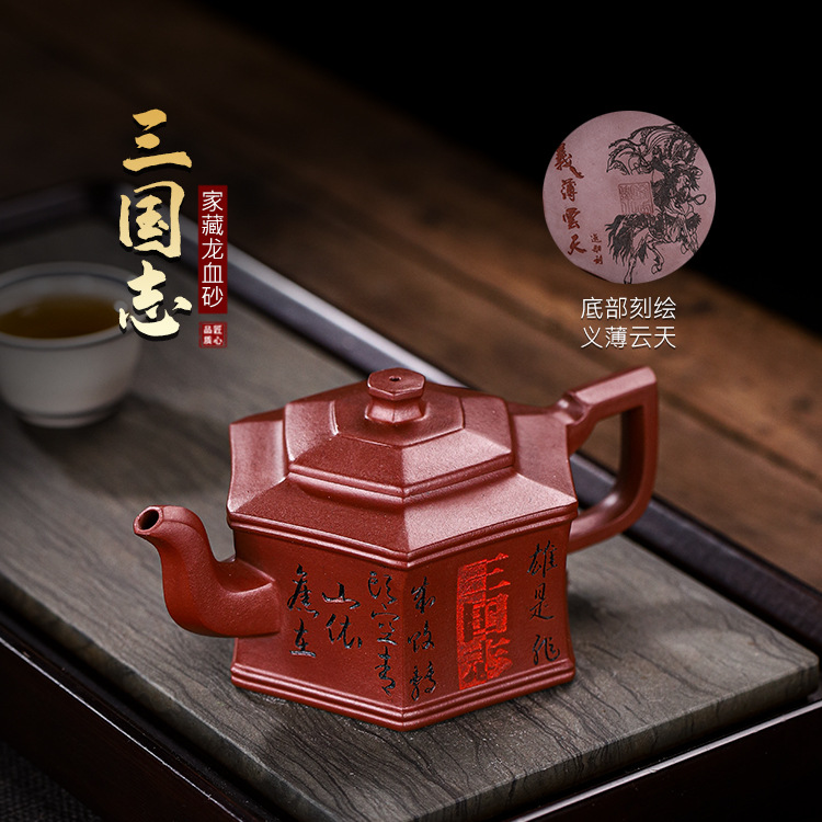宜兴手工紫砂壶证书家藏龙血砂三国志易包浆出水暴爽不漏水