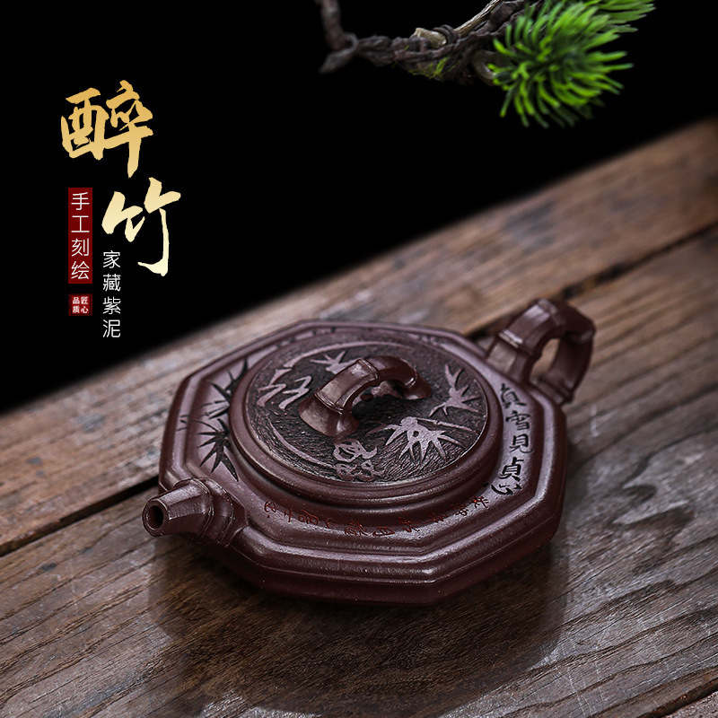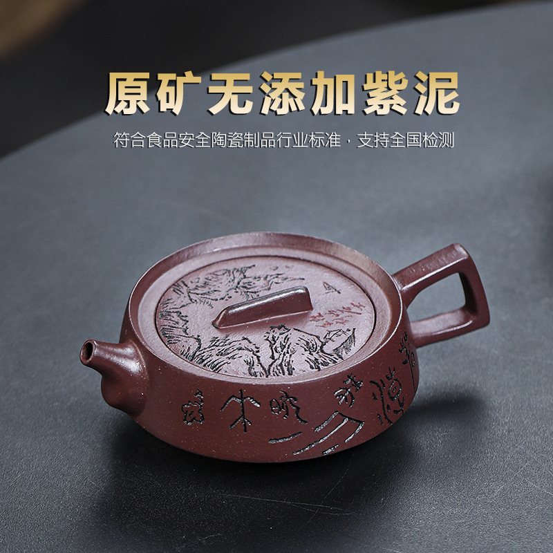 正宗紫砂壶原矿段泥刻绘梅兰竹菊天际壶手工茶具家用泡茶壶批发