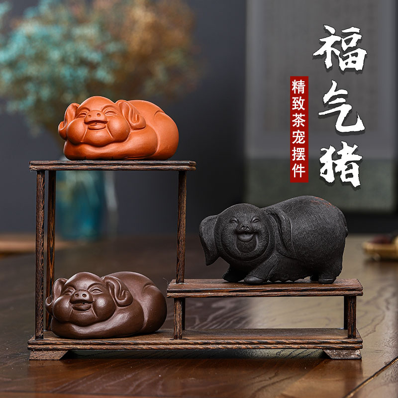 紫砂茶宠摆件紫泥可养招财福气猪一件代发功夫茶具配件可爱茶