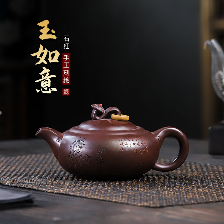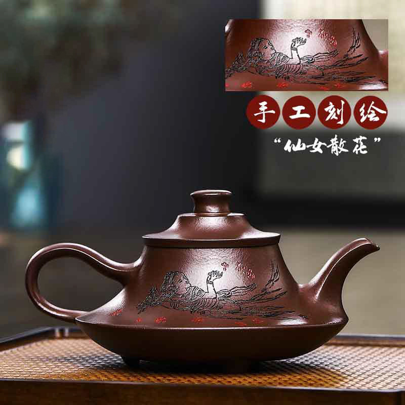 宜兴手工紫砂壶仙女散花石红 易包浆 出水顺畅 滴水不漏