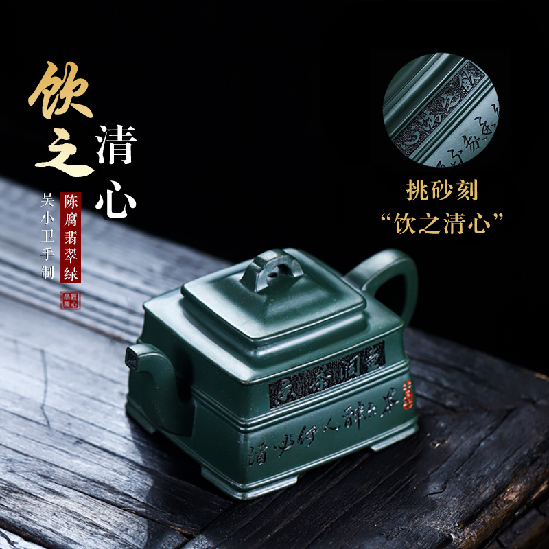 宜兴手工紫砂壶证书全陈腐翡翠绿仪态万千易包浆出水暴爽不漏水