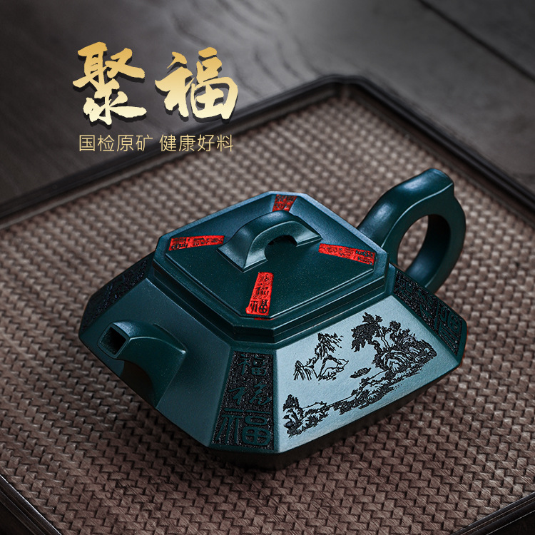 宜兴手工紫砂壶证书全陈腐老墨绿泥聚福易包浆出水暴爽不漏水