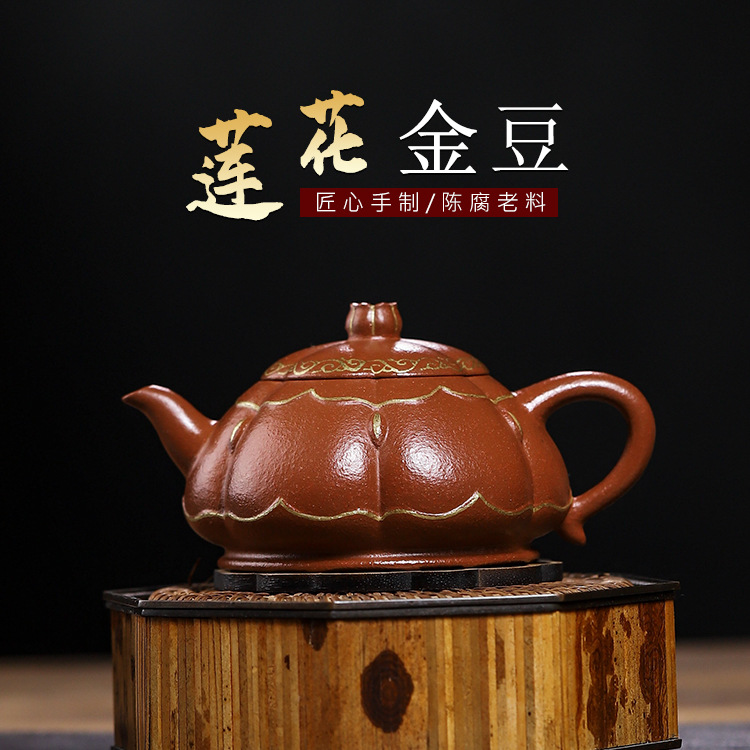 宜兴手工紫砂壶家藏降坡泥莲花金豆家用茶具茶壶泡茶壶出水爆爽